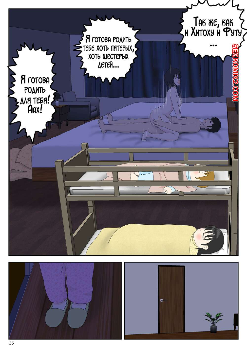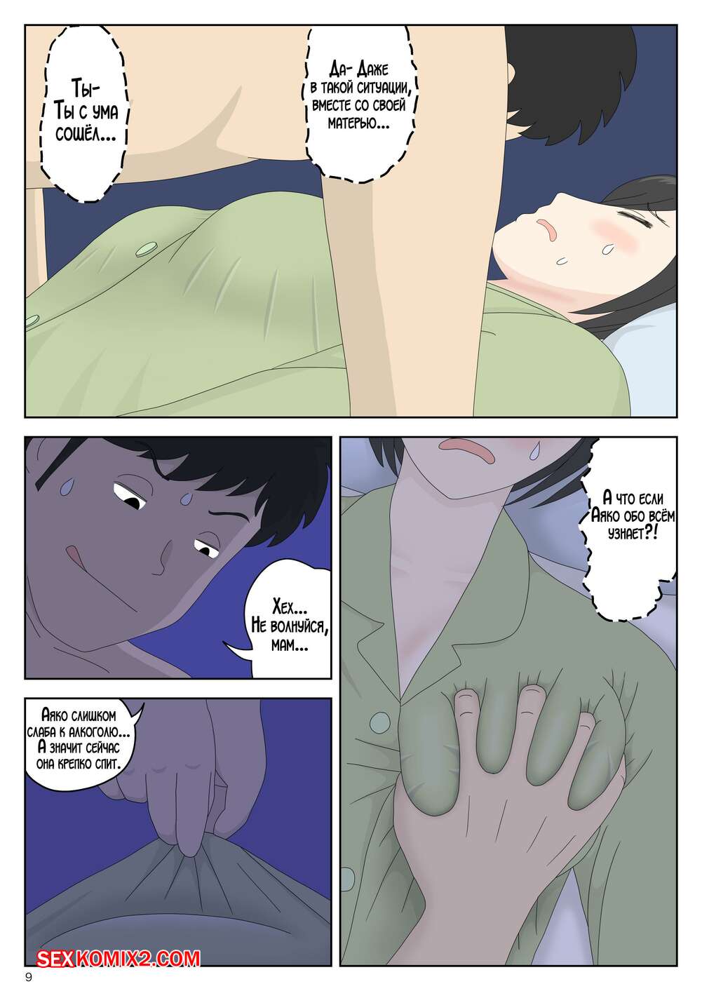 Порно комикс Моя мама мастурбатор. Часть 5.1. Onaneta Kaasan. Mizuarai No Kai Парень пробрался ночью в комнату к своей горячей мамке, желая с ней повеселиться. Он стал ласкать пизденку милфы, после чего как следует ее выебал и заполнил своей спермой.
