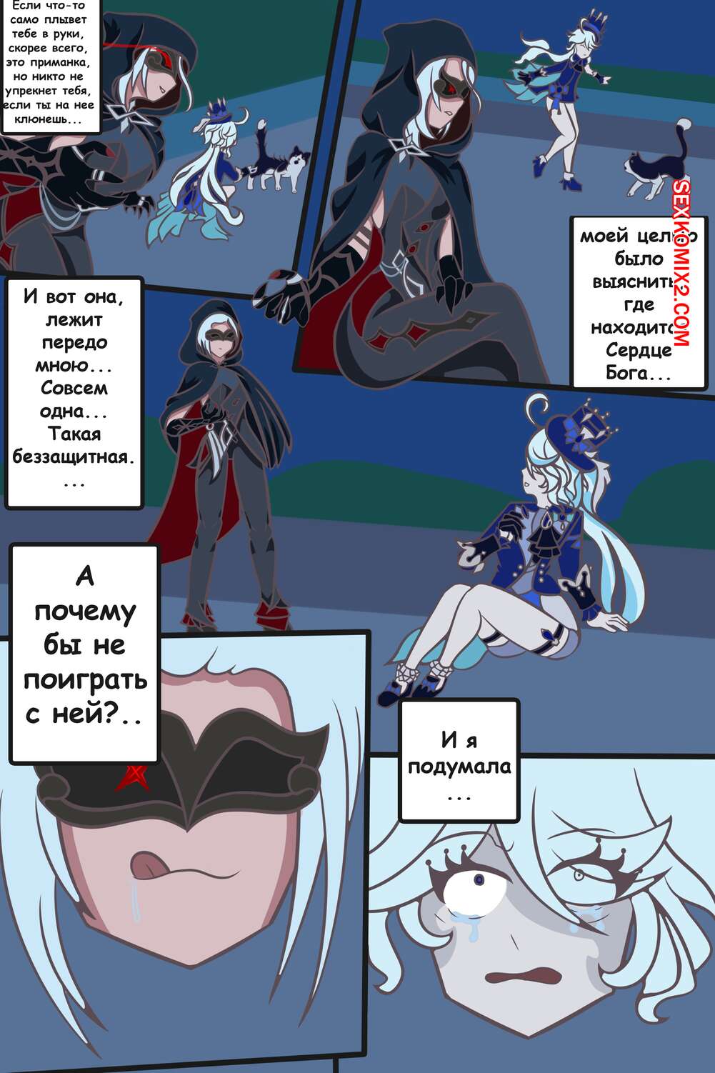 Порно комикс Genshin Impact. Новый питомец Арлекино. Arlecchinos New Pet. Ch3rT1La Арлекино пленила девушку и решила повеселиться с ней. Красотка с большим хуем дала пленнице отсосать свой большой хуй, после чего выебала ее пизденку, заполнив своей спермой.