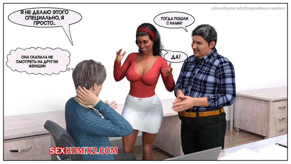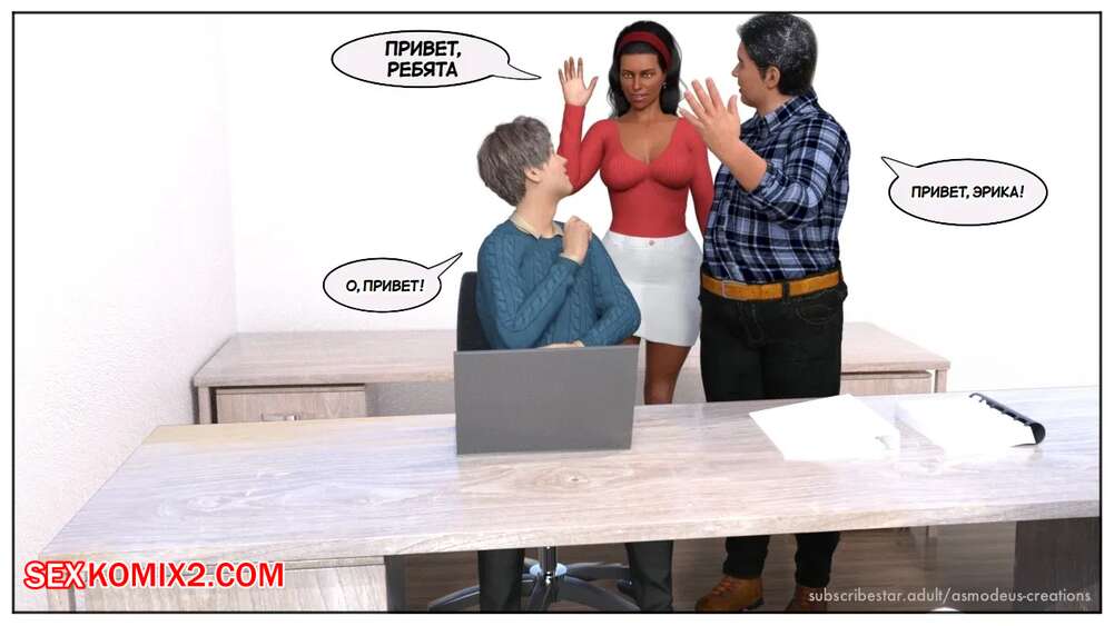 Порно комикс Моя новая работа. Часть 2. My New Job. Lucius Logan Сисястая блондинка милфа стала подозревать своего нового сотрудника в нарушении правил офиса и вызвала его к себе. Красотка собиралась уволить парня, но он стал умолять ее не делать этого.