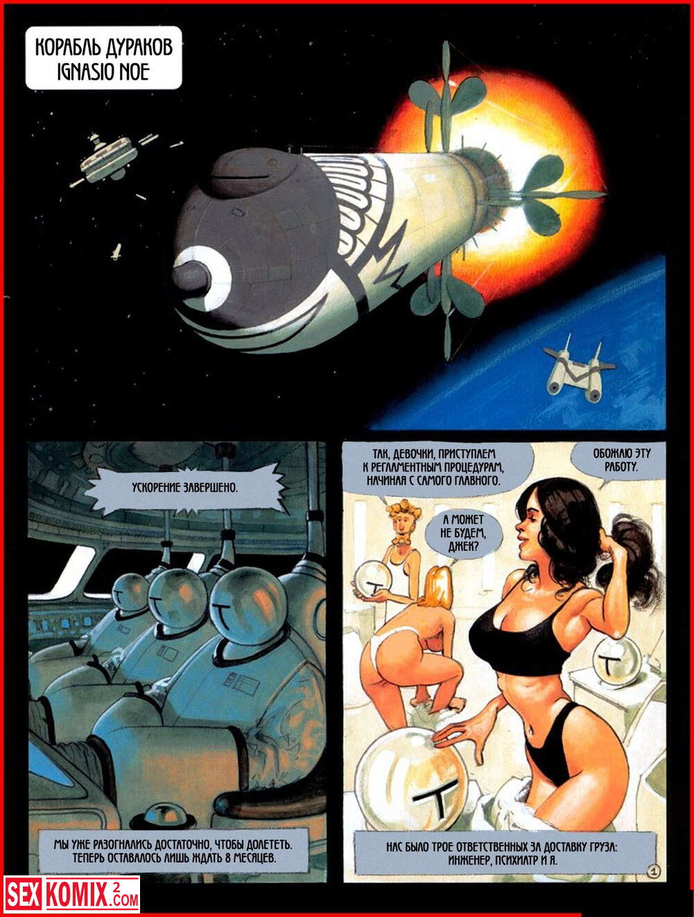 Порно комикс Корабль дураков. Космический корабль полностью управляется роботами. А люди только трахаются. Много лет они путешествуют по космосу и кроме того чтобы заниматься сексом больше ничего не умеют.