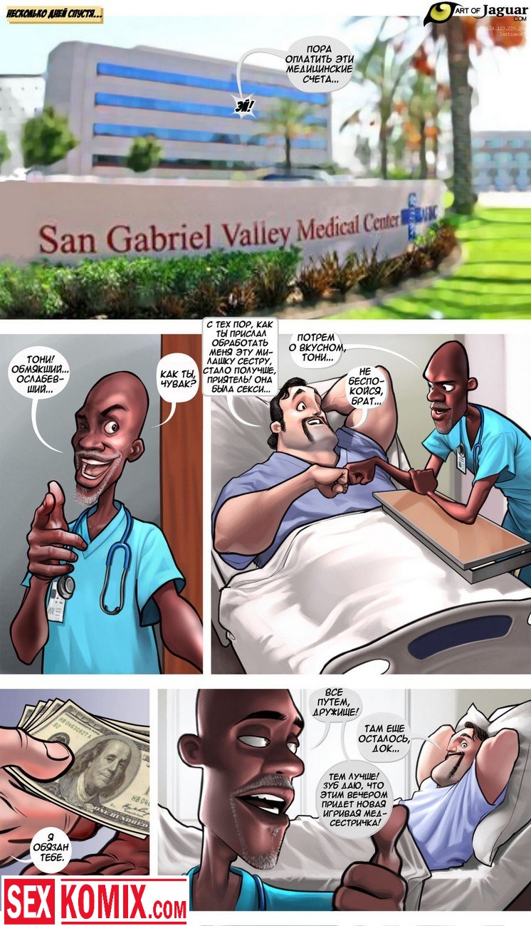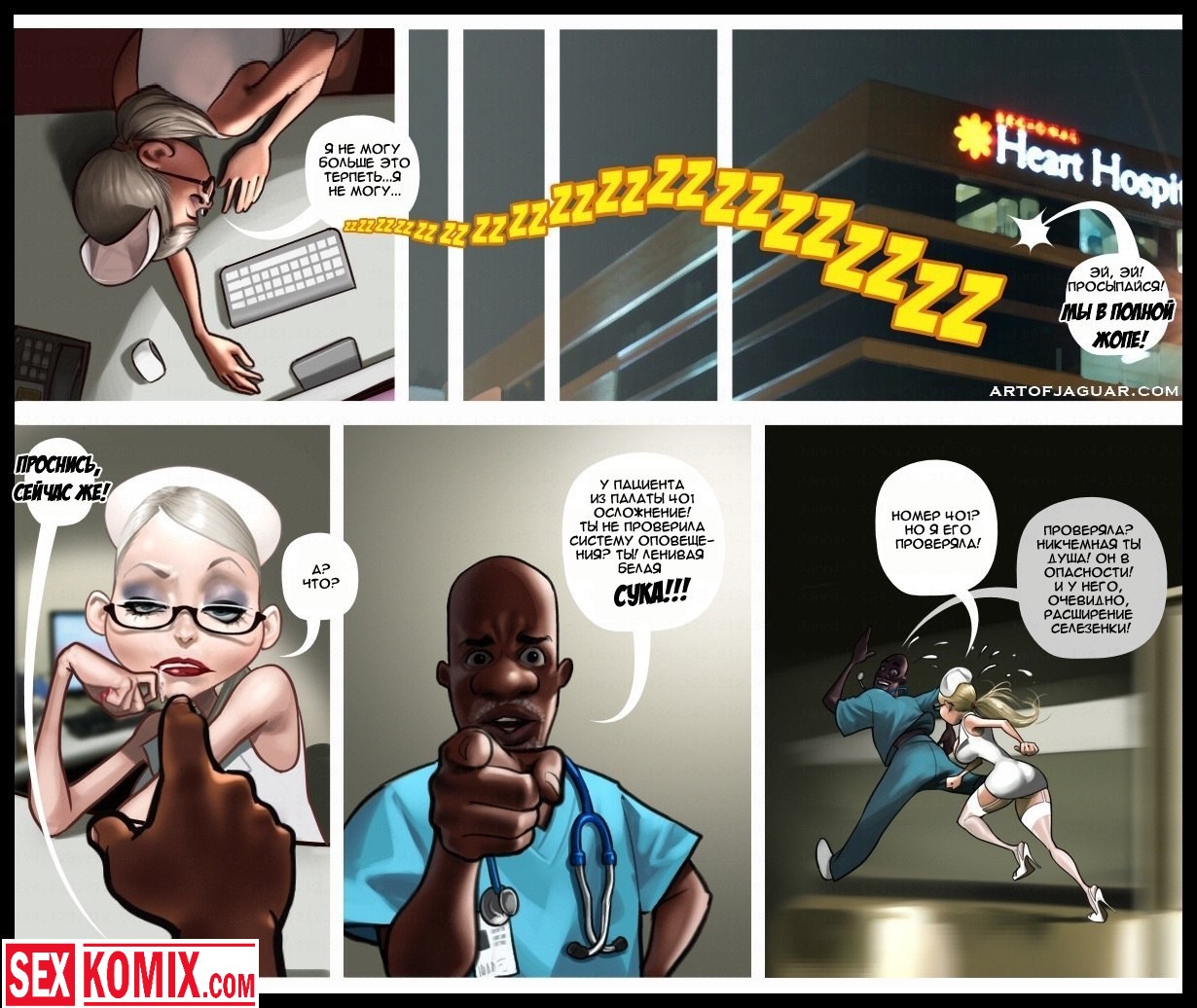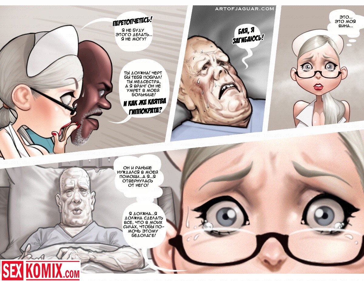 Порнокомикс Ночная сиделка. Этот секс комикс на русском о молоденько, глупой и в тоже время очень сексуальной и возбуждающей медсестре по имени Сара. Она работает в ночную смену и следит за состоянием их здоровья. В ночь с ней ещё работает старший врач, он её учит помогать больным, но не так как обычно. Врач заставляет её сосать члены и трахаться с больными, чтобы они поправлялись. Очень тяжелая ночка выдалась у секс сестрички, потому что как на зло всем пациентам резко стало плохо и им требуется секс помощь.