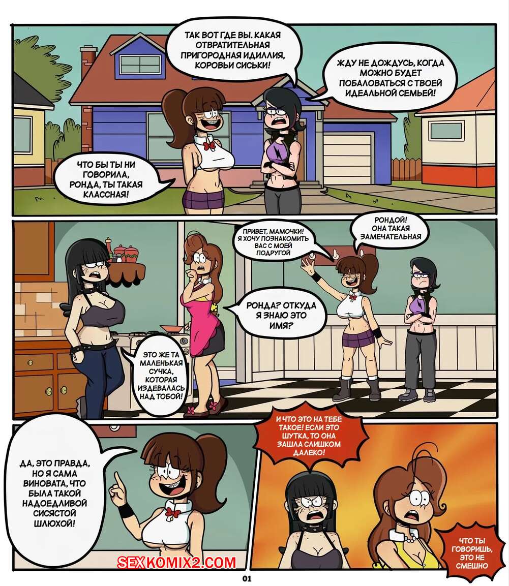 Порно комикс Шумный дом. Изображение идеальной семьи. Picture Perfect Family Две пары сексуальных девушек устроили знакомство и, ествественно, оно зашло далеко. Девушки разделись и стали ласкать друг дружку, после чего занялись групповой лесбийской еблей.
