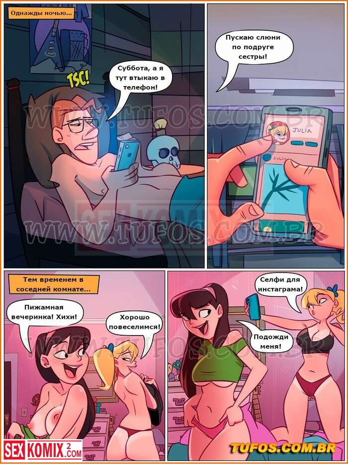 Порно комикс Похотливая семейка. Часть 94. Ночевка. Карлитос смотрит фотографии подружки своей сестры, и хочет её трахнуть. Он узнал, что сегодня она осталась с ночевкой у них дома. Когда наступила ночь парень проник в комнату где спала девушка и вставил свой член в её ротик.