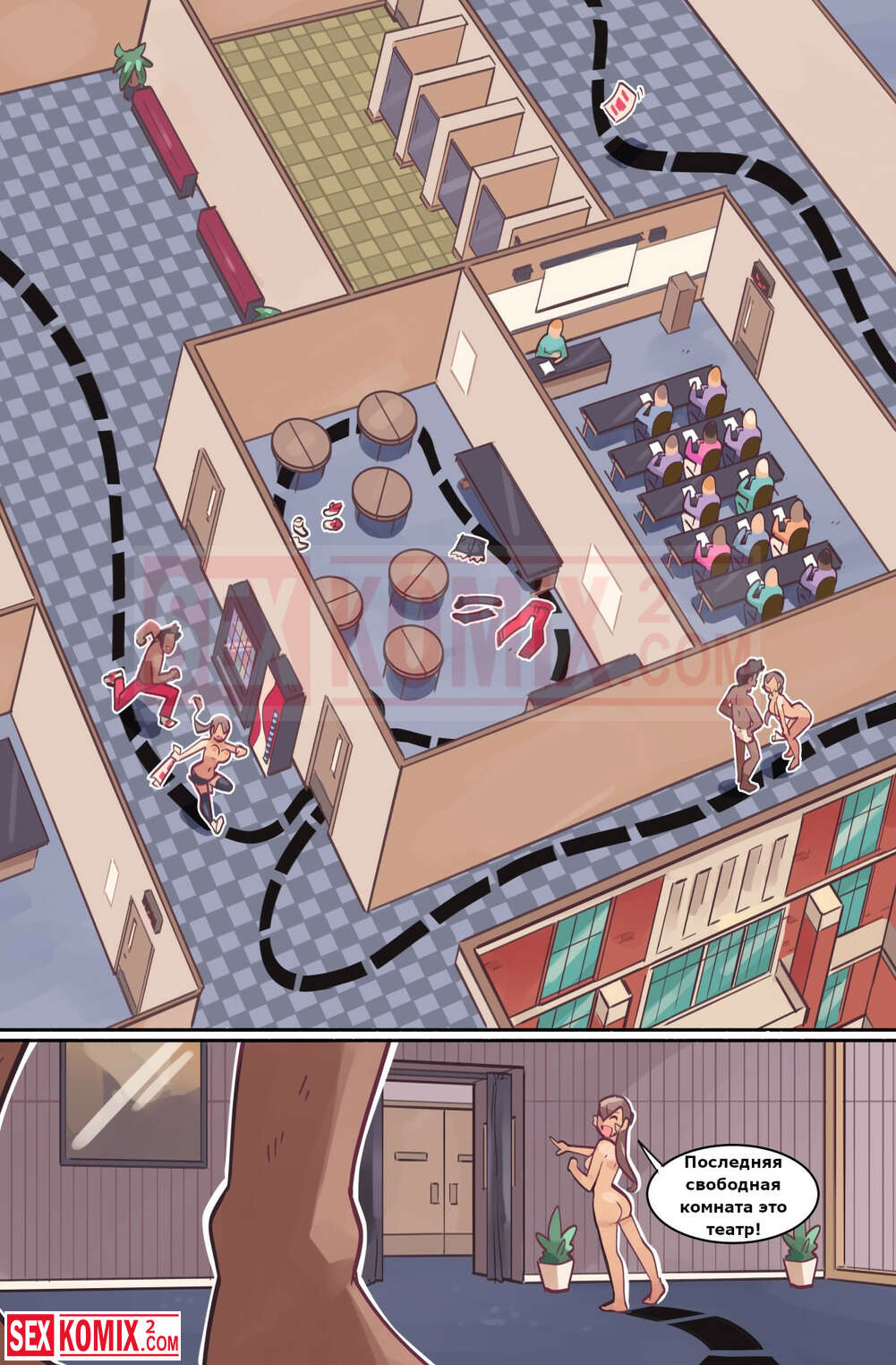 Порно комикс Перерыв в учёбе. Часть 3. Study Break. В классе биологии девушка застала чернокожего парня за мастурбацией, она сняла свои трусики и поманила его за собой. Парень как заворожённый пошел за красоткой.