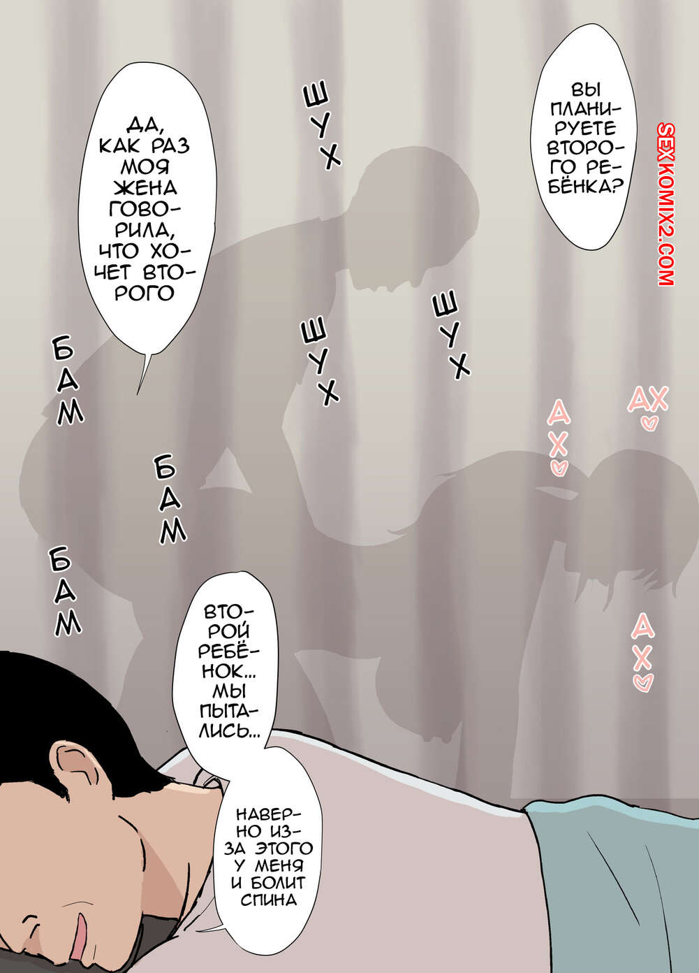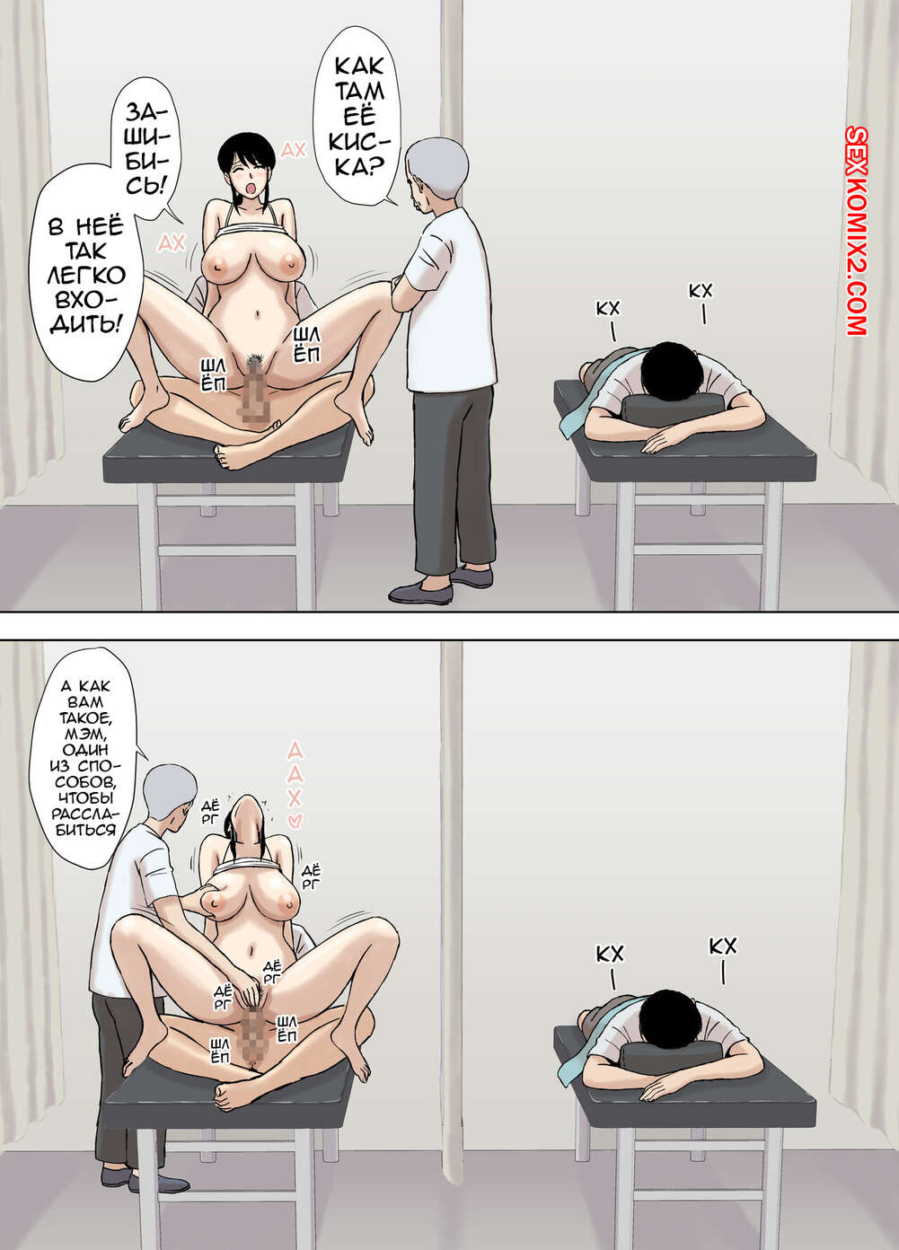 Порно комикс Аяно из семьи Каземаки, массаж со стояком Сисястая брюнетка милфа беременна и хочет расслабиться. Красотка вызвала к себе массажиста и вскоре возбудилась от его прикосновений. Девушка раздвинула ножки и дала массажисту себя выебать.