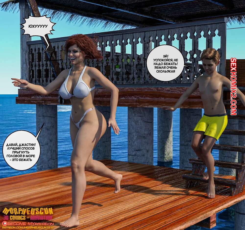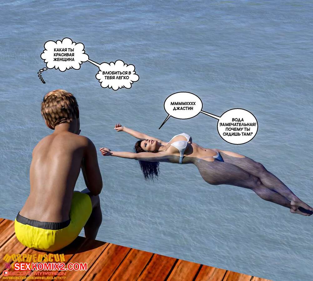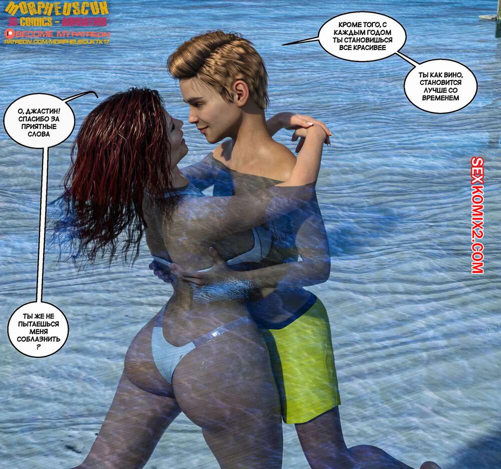 Порно комикс Соседство. Часть 25. Neighborhood. Morpheuscuk Джастин и Аманда пошли искупаться в океане, после чего решили повеселиться. Милфа встала на колени и отсосала большой хуй парня, после чего дала ему себя выебать.