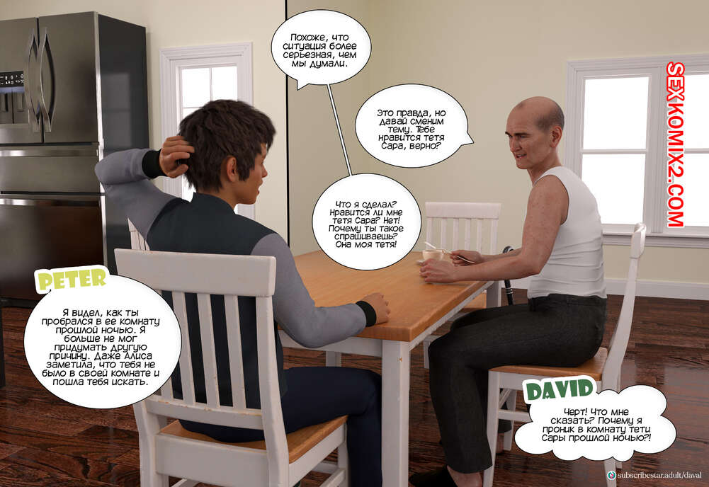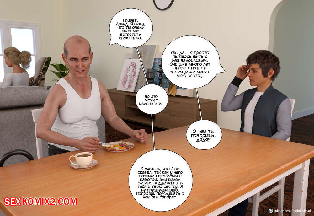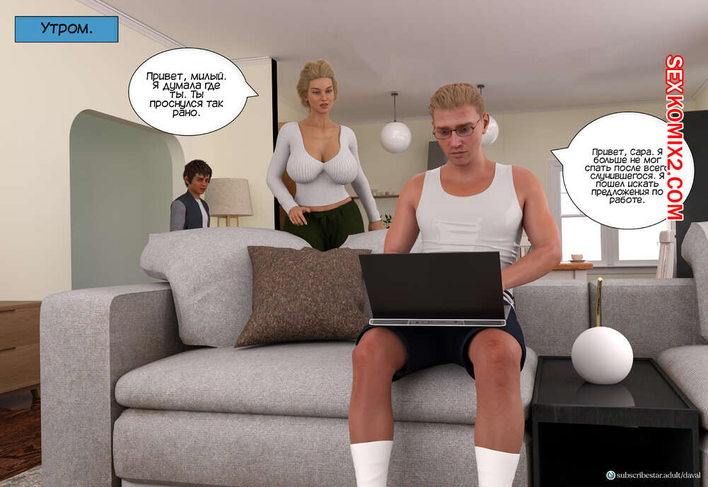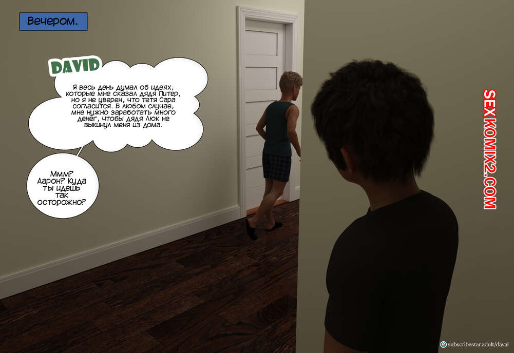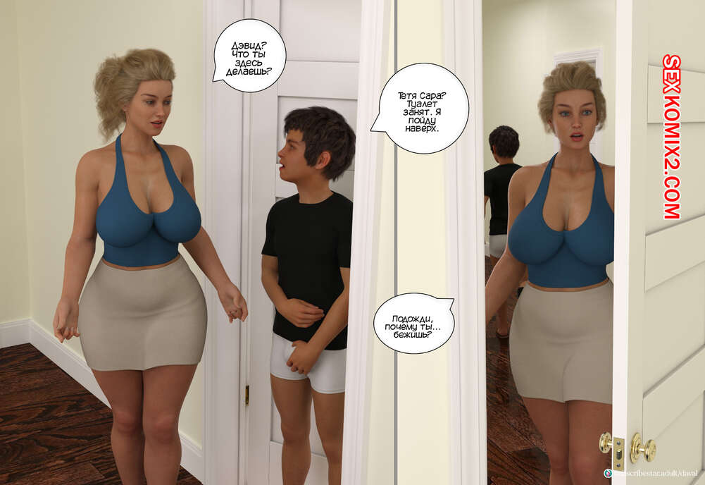 Порно комикс Вместе. Часть 7. Together. Daval3D Дэвид пробрался в комнату к своей тете, чтобы воспользоваться моментом и выебать ее. Он стал трахать пизденку Сары, пока ее муж Люк спал рядом. Но внезапно он проснулся..