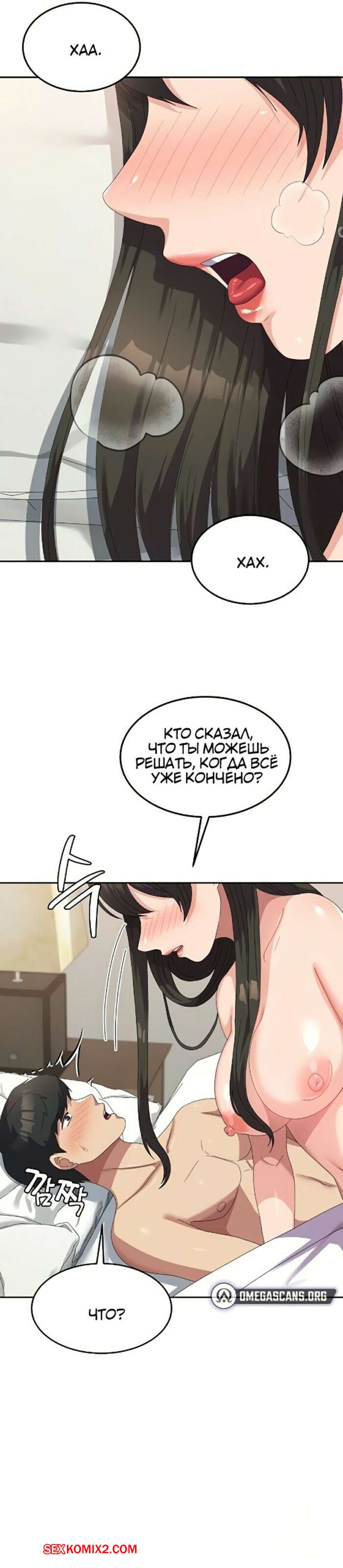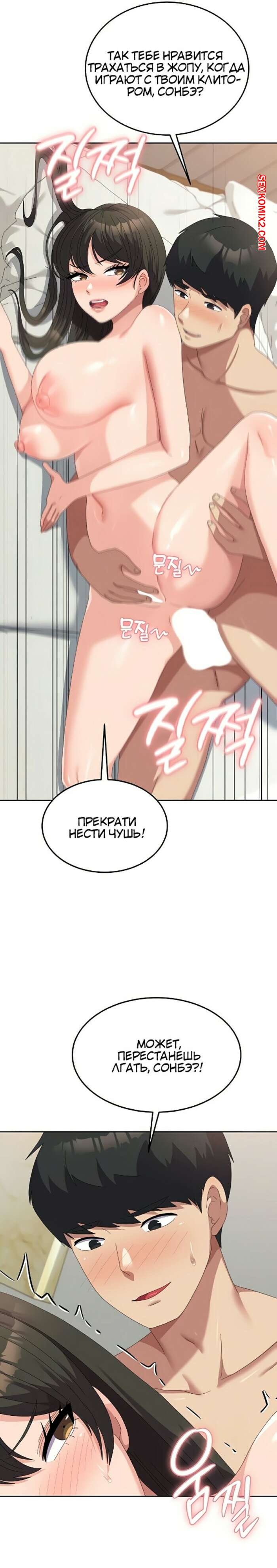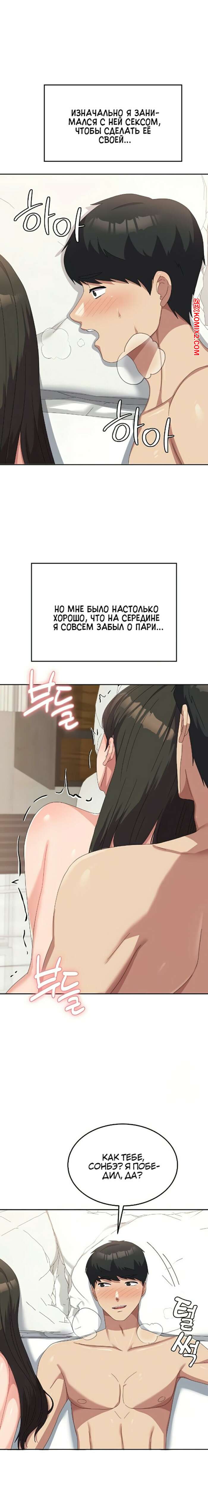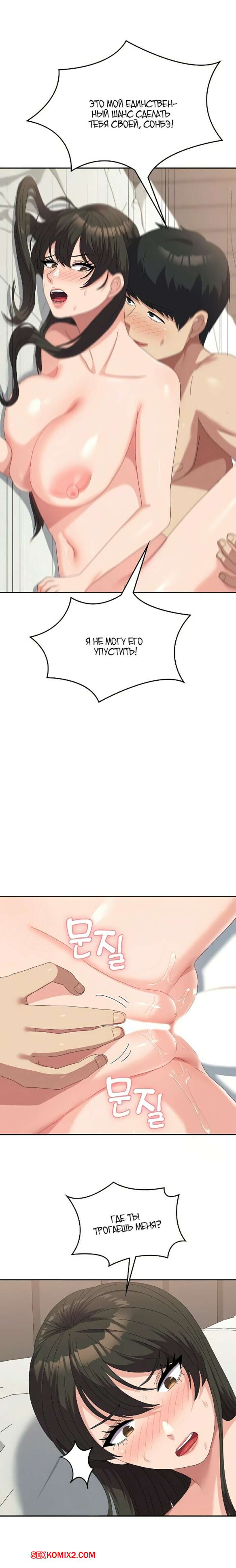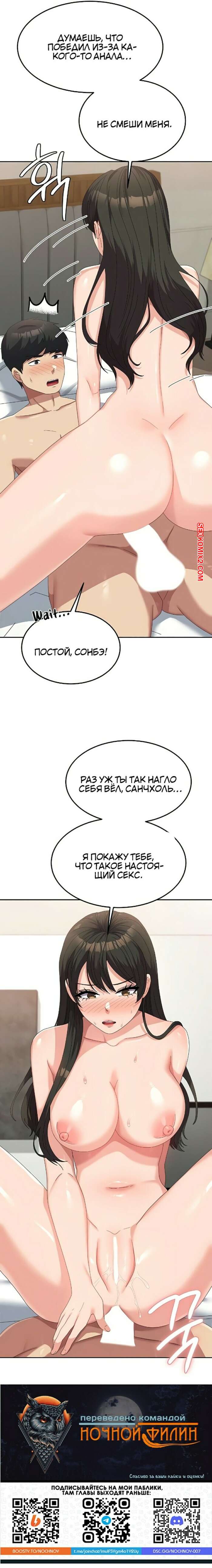 Порно комикс Студент в женском универе. Части 50 и 51. Women University Горячая брюнетка разделась перед парнем и уложила его на кровать. Девушка оседлала большой хуй своего дружка и дала ему себя хорошенько выебать, получив огромное удовольствие.