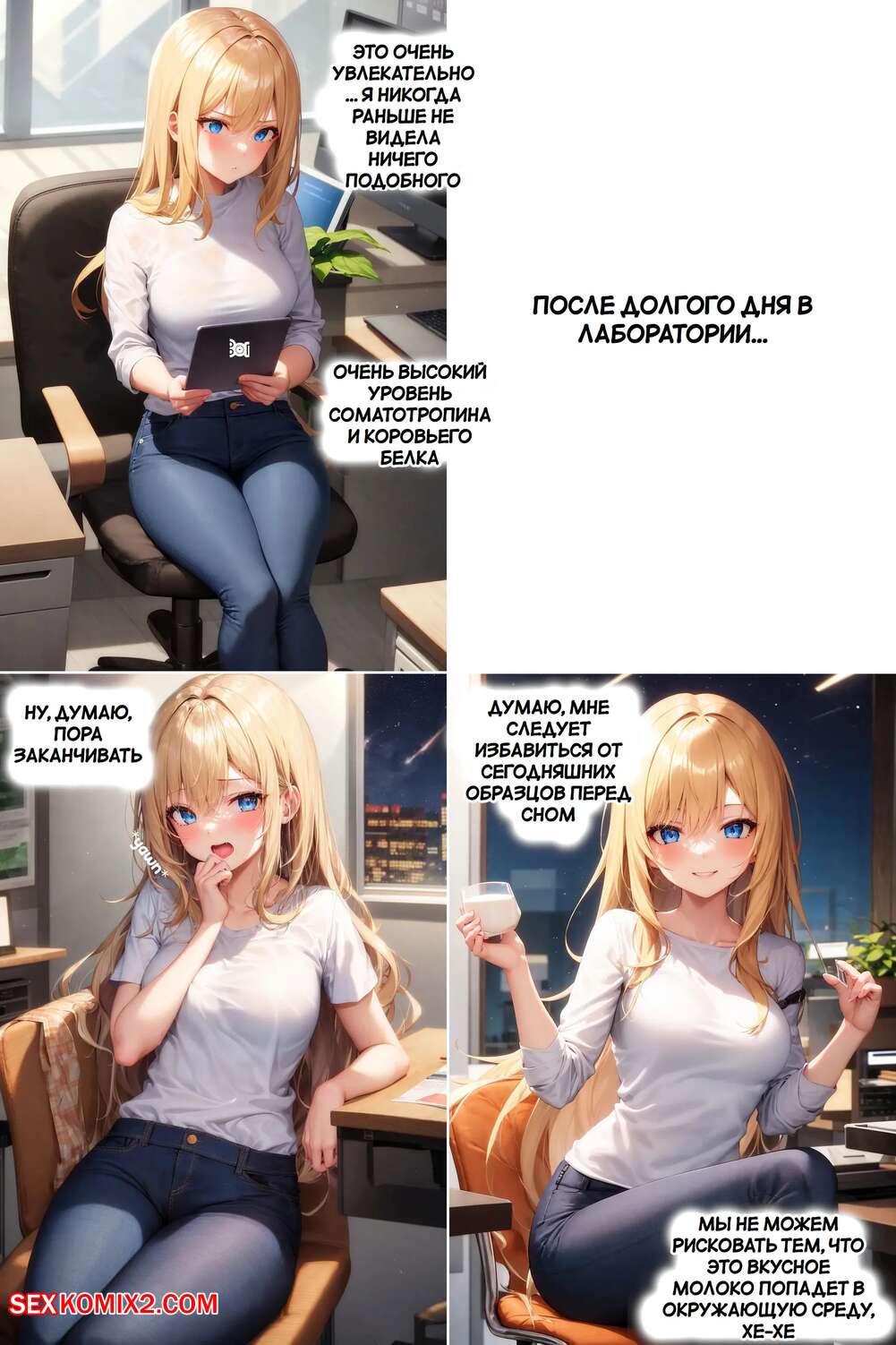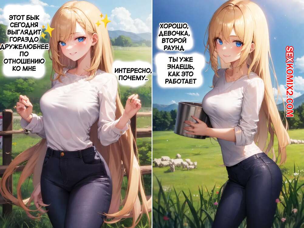 Порно комикс Бычий перебор. Bovine Bustout. AI Generated. Горячая блондинка приехала на ферму на летнюю подработку. Девушка обладает шикарным телом, но с ней творится чтото невероятное и ее прелести становятся только больше.