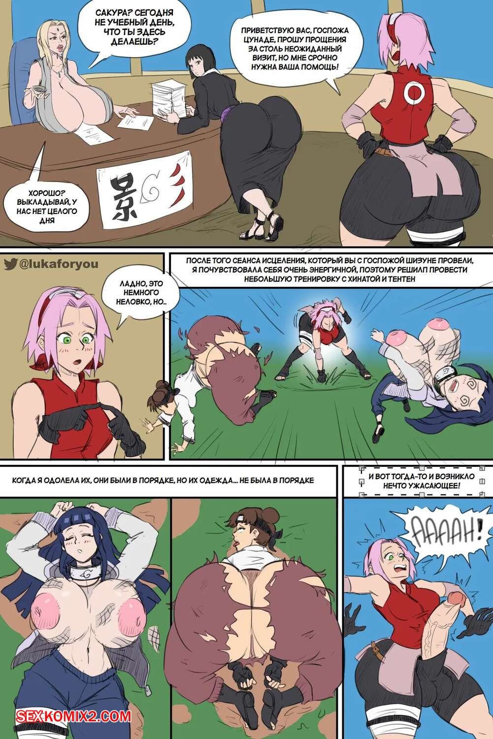 Порно комикс Наруто. Разборка Сакуры. Sakura Showdown. ArtbyLuka. Горячие красотки без ума от большого члена своего подруги Сакуры. Девушки раздеваются и сосут большой хуй красотки, после чего дают ей себя хорошенько выебать.