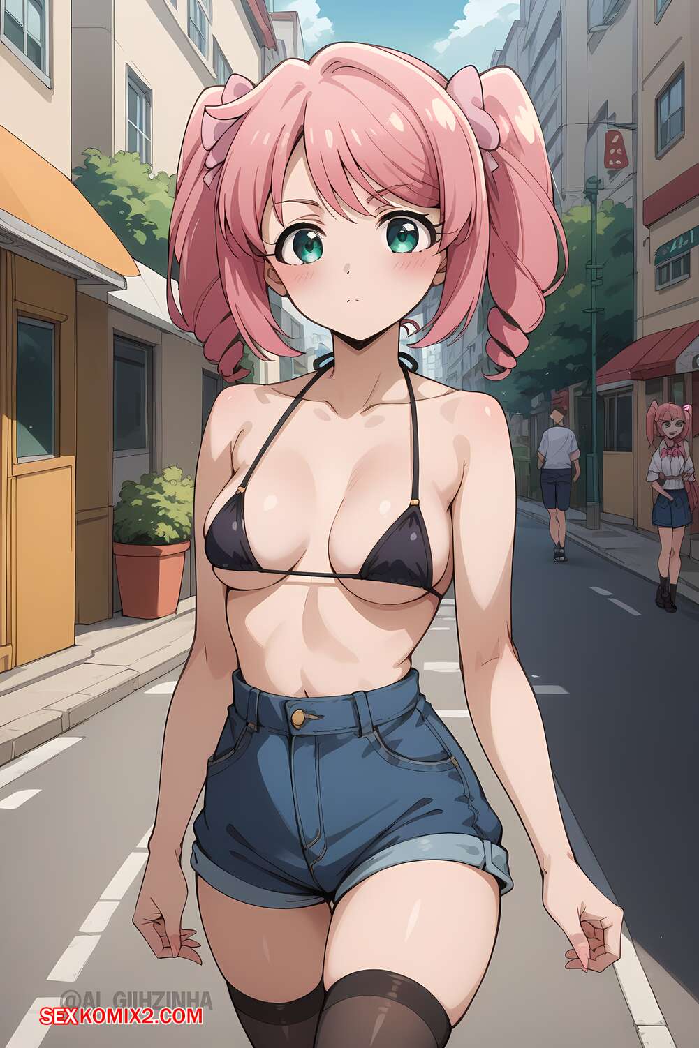 Порно комикс Alley Fun. AI Giihzinha Горячая красотка познакомилась на улице с парнем и решила с ним повеселиться. Девушка разделась и возбудила парня шикарным телом, после чего стала ласкать его большой хуй.