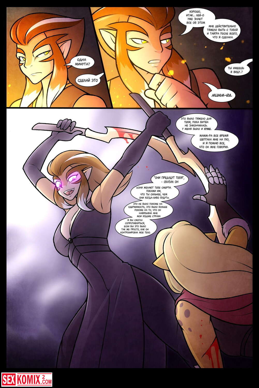 Порно комикс Фурри Ливень. Девушка сильно переживала из-за неудачного боя, но её союзник смог успокоить красотку и приласкал её ночью у костра.