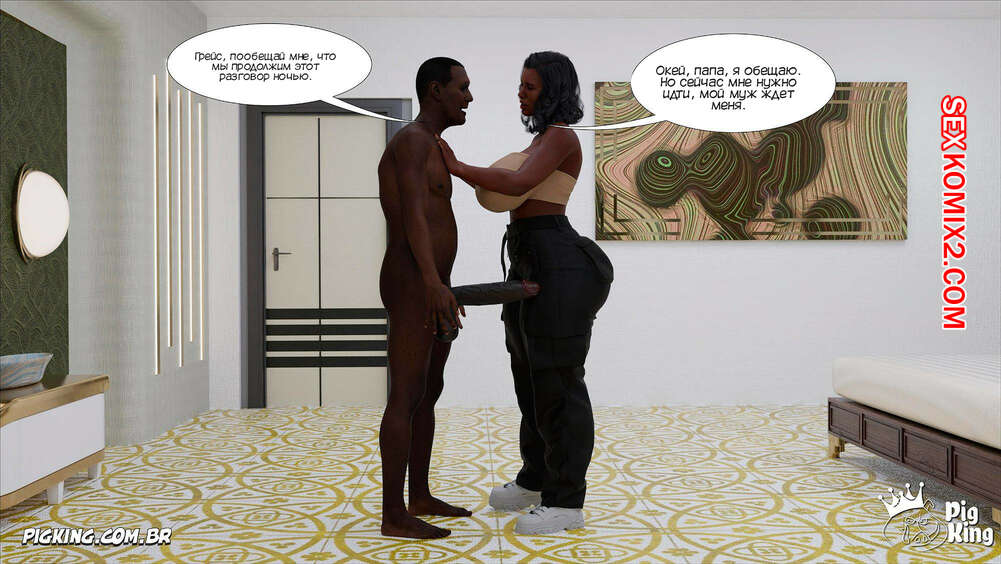 Порно комикс Большой черный член. Часть 3. Big Black Cocks. CrazyDad3D Темнокожий старик стоял под дверью и дрочил свой член, слушая как его дочь занимается сексом с мужем. Он обильно кончил на пол, после чего пошел в свою комнату, ожидая дочь.