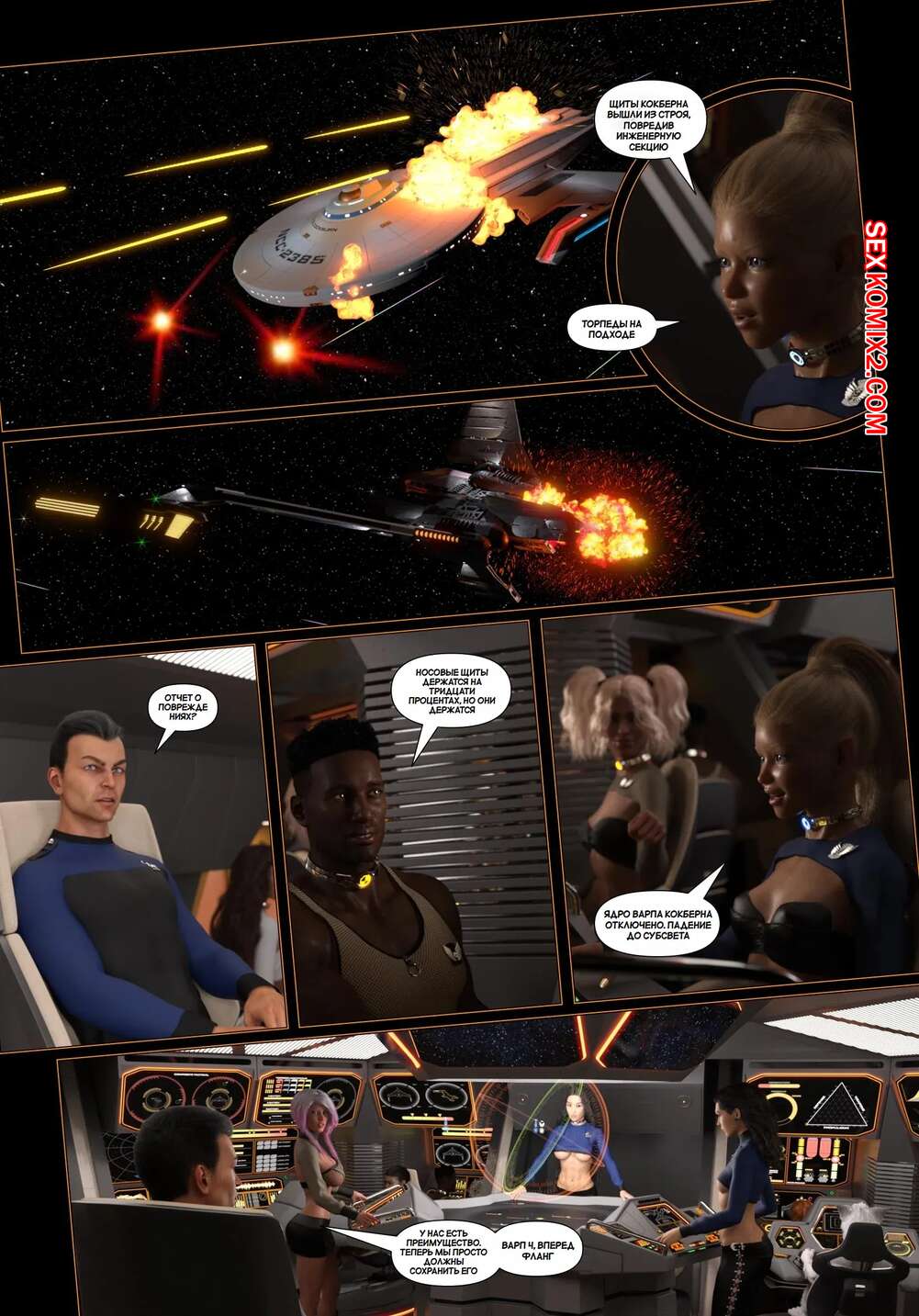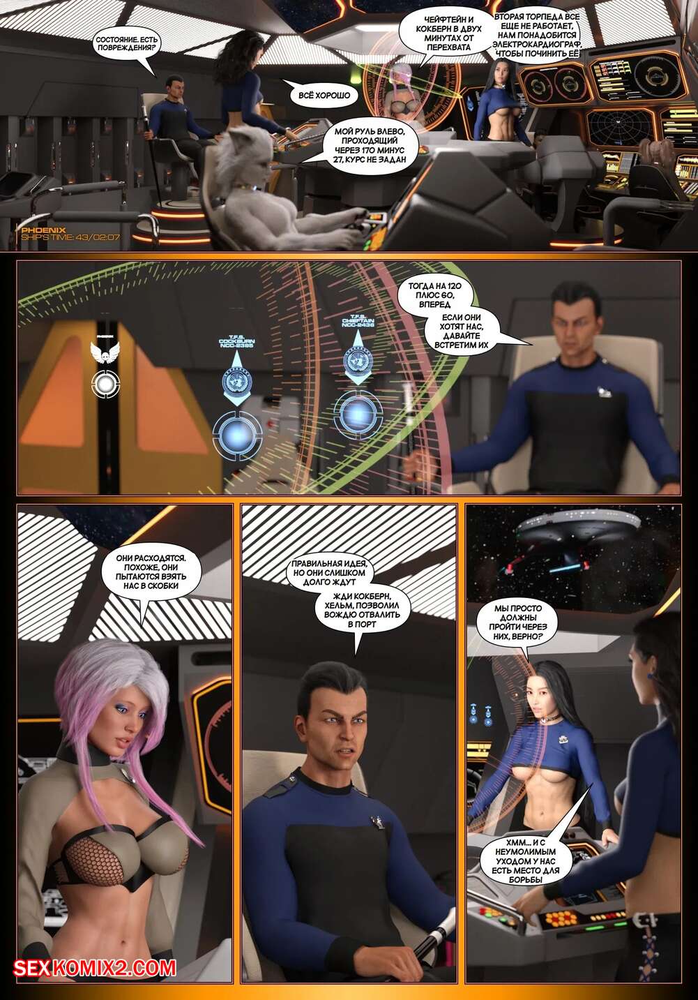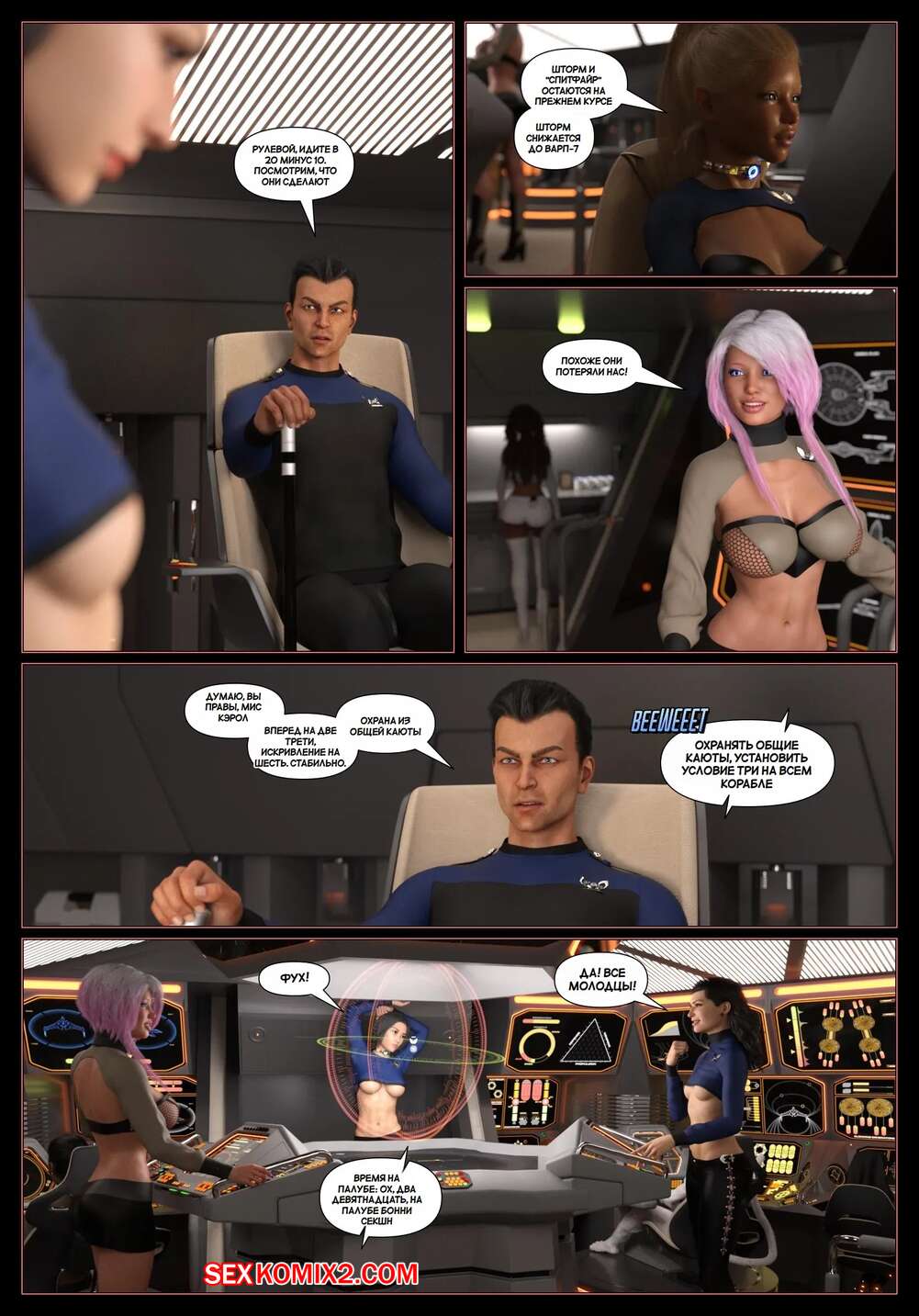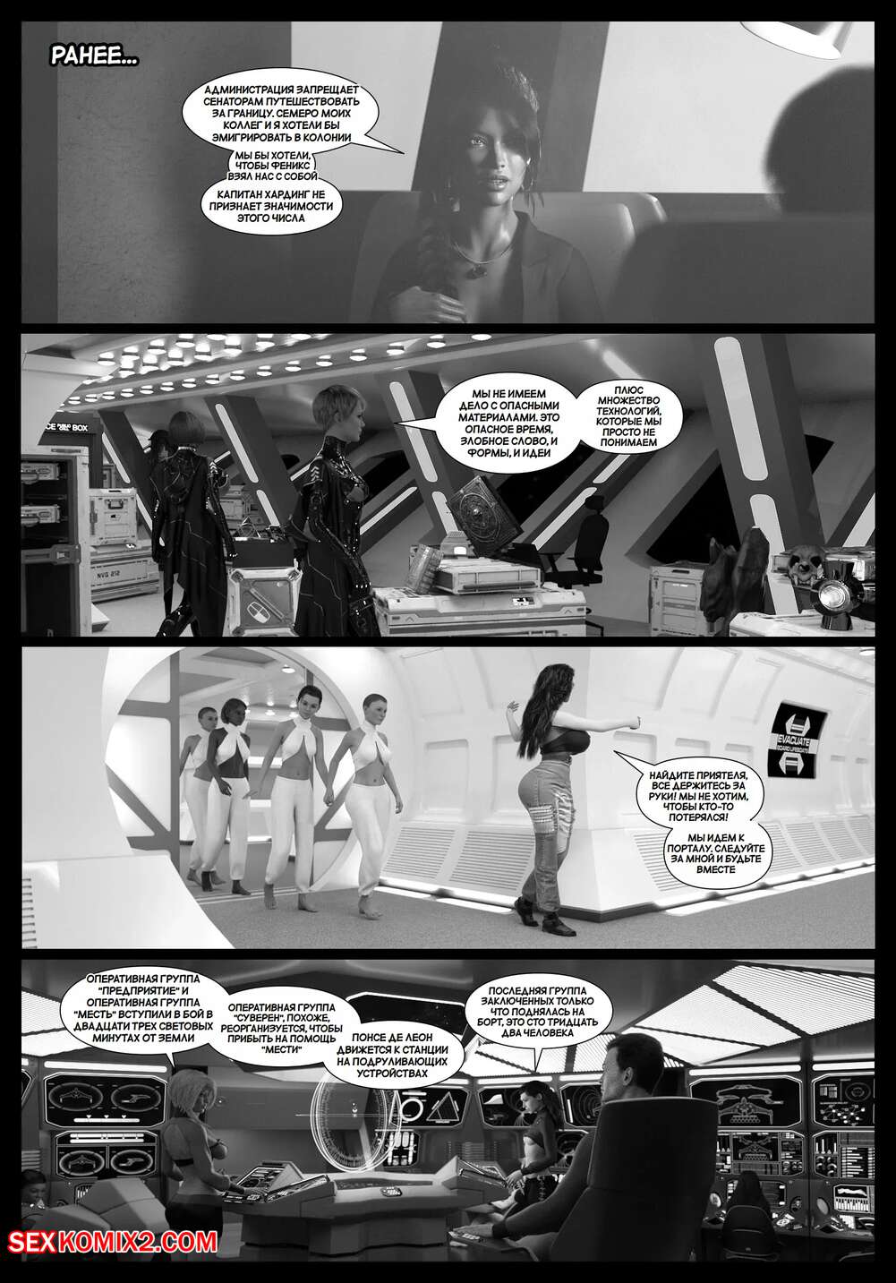 Порно комикс Пираты Угольного Мешка. Часть 28. Pirates of the Coal Sack. DangerousLines Горячие красотки с шикарными телами уединились со своим дружком, желая повеселиться. Девушки разделись и отсосали большой хуй парня, после чего дали ему себя выебать.
