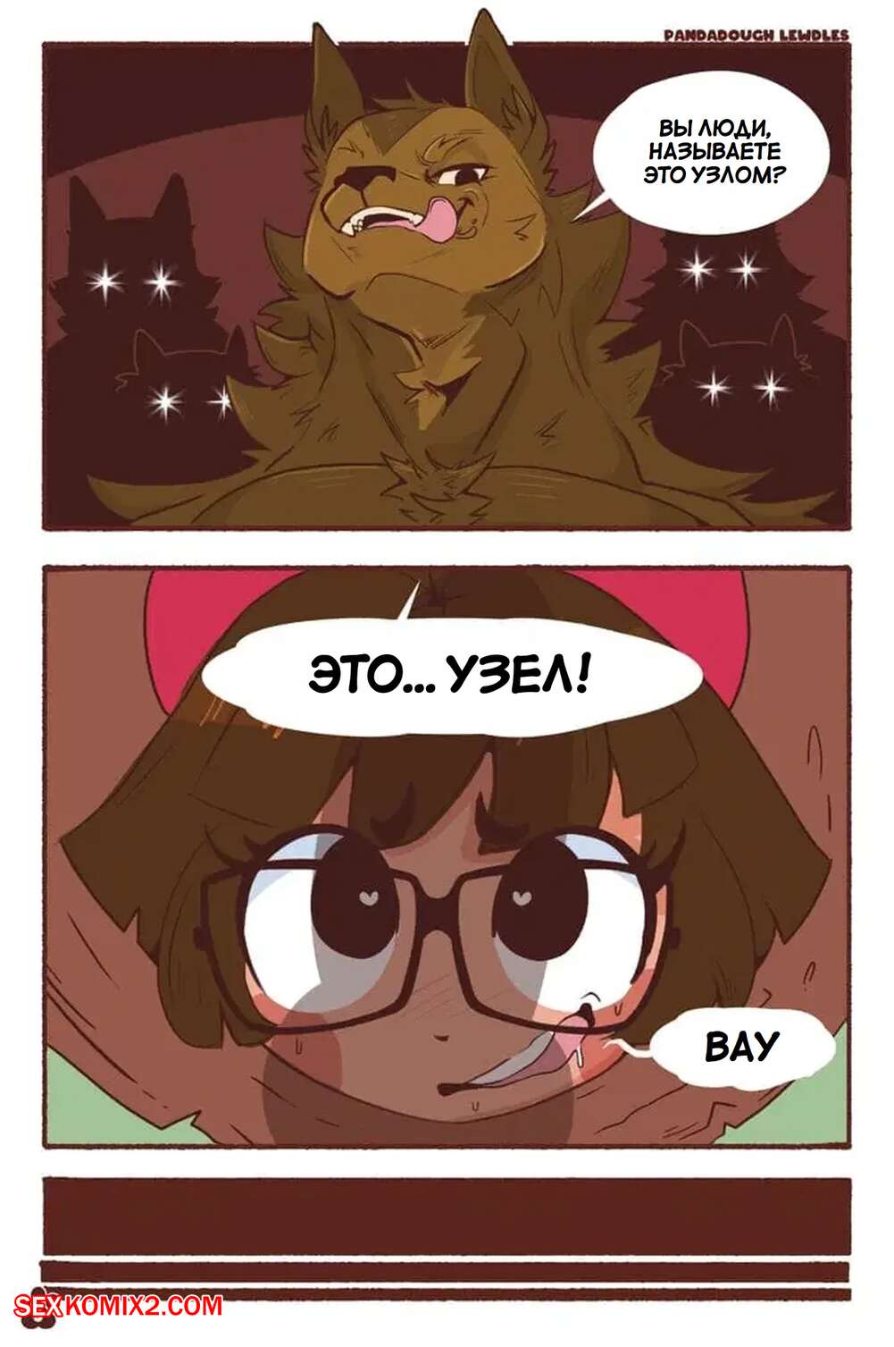 Порно комикс По звериной тропе. On The Beastly Trail. PandaDough Молодая брюнетка прогуливалась в лесу и застряла в дереве. Мимо нее проходила толпа парней медведей, которые застали беззащитную девушку и решили ее выебать.