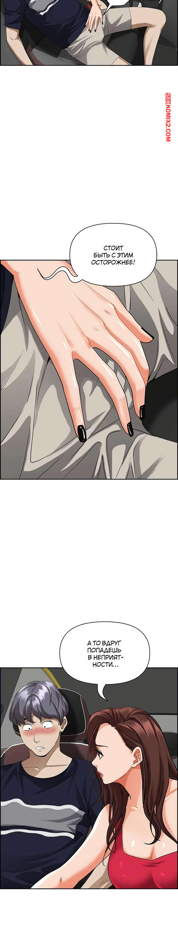 Порно комикс Жизнь с милфой. Часть 52 и 53 и 54. Married Woman Во время поездки горячая милфа возбудилась и решила повеселиться с молодым парнем. Она стала сосать его большой хуй, после чего села на его член и дала ему себя выебать.