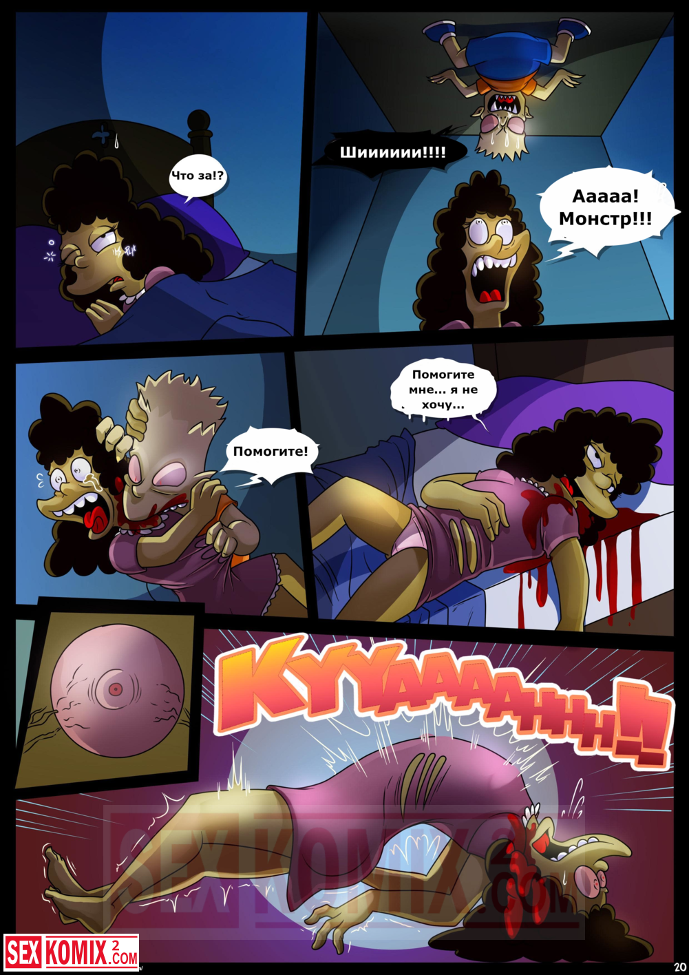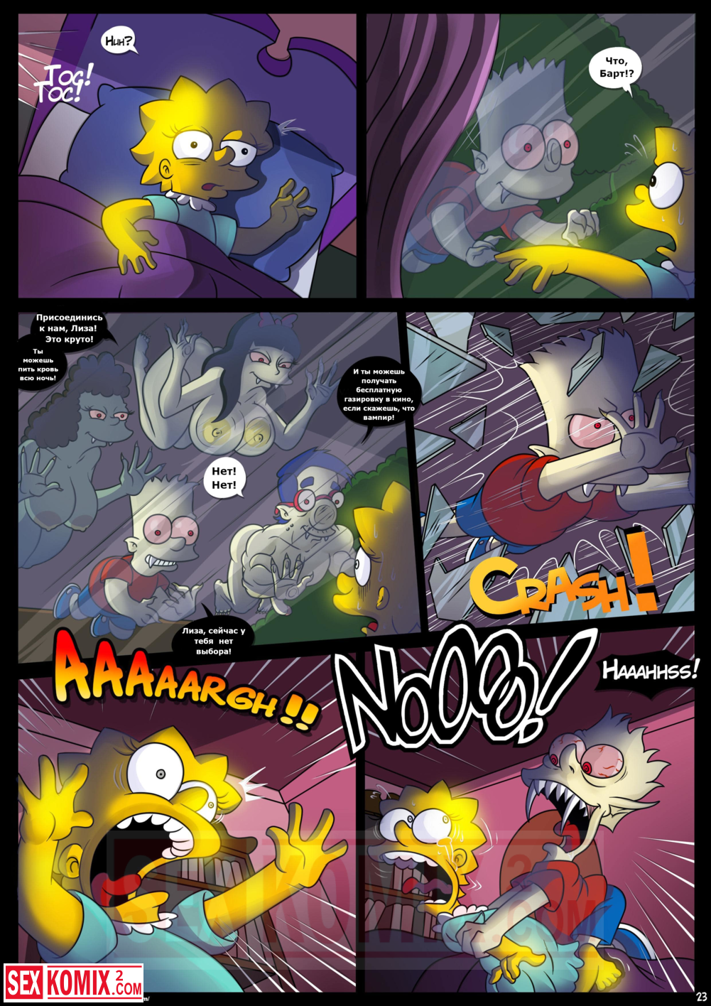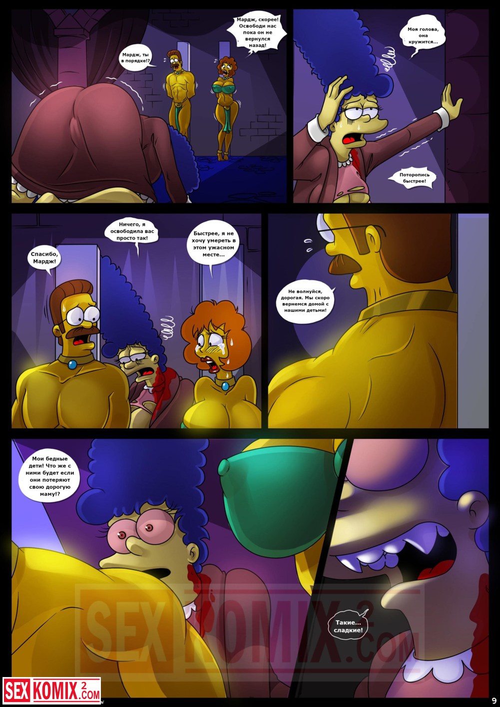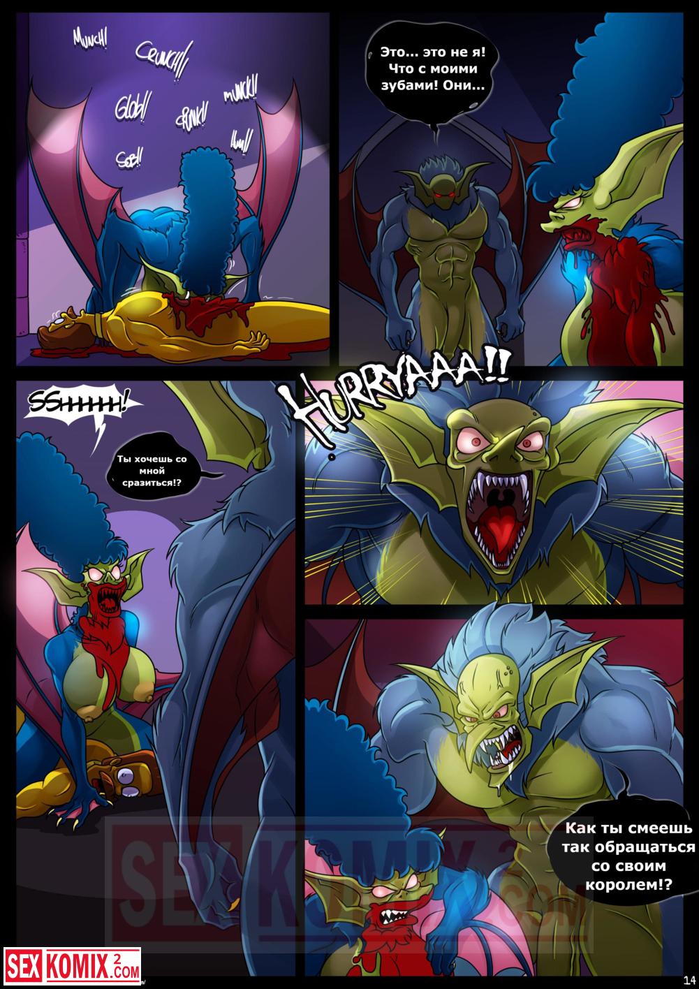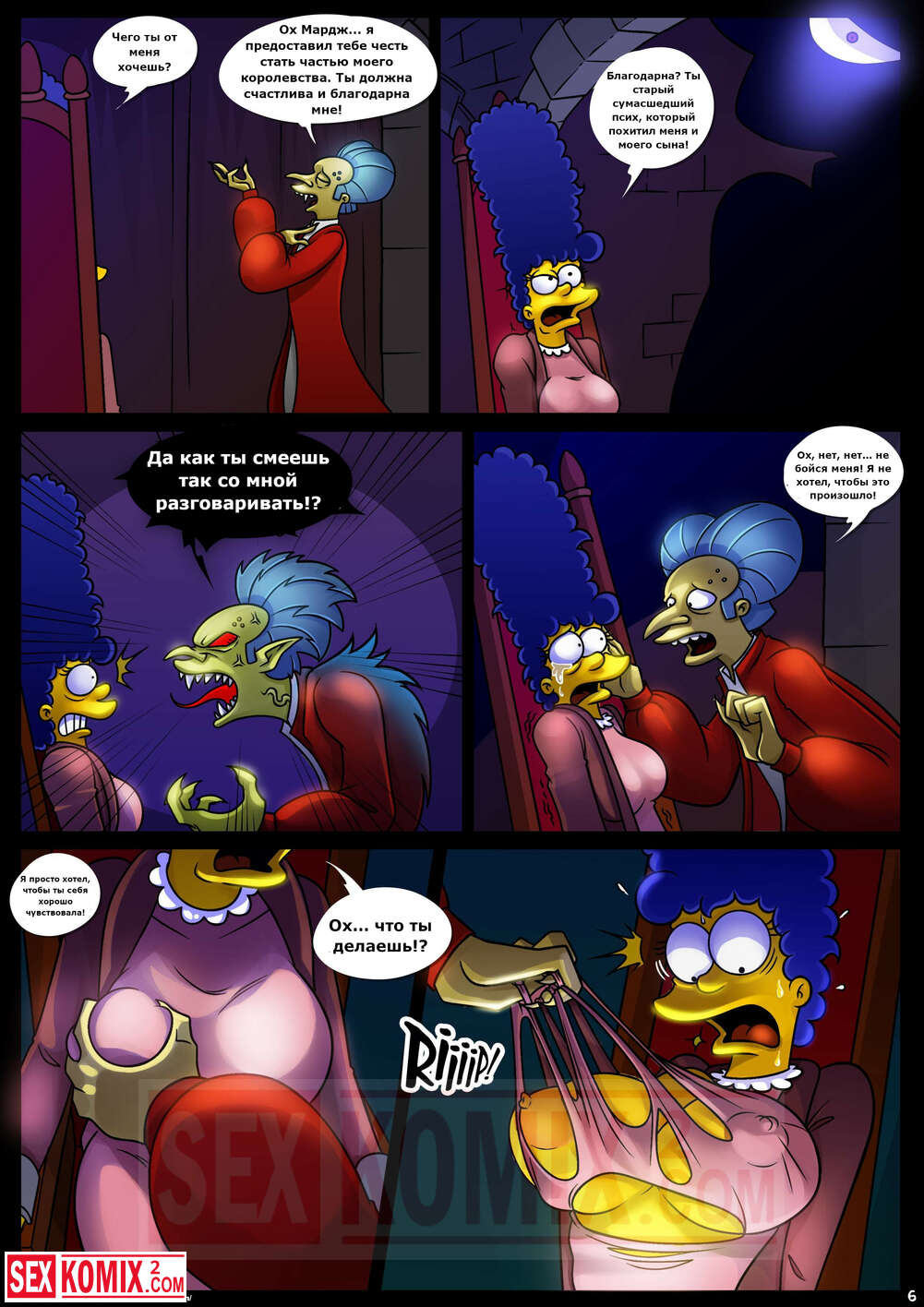 Порно комикс Симпсоны. Домик на дереве ужасов. Часть 4. Kogeikun. Семья Симпсонов попала в старый замок, где обитает древний вампир. Он кусает Мардж и трахает её, пока Гомер спит.