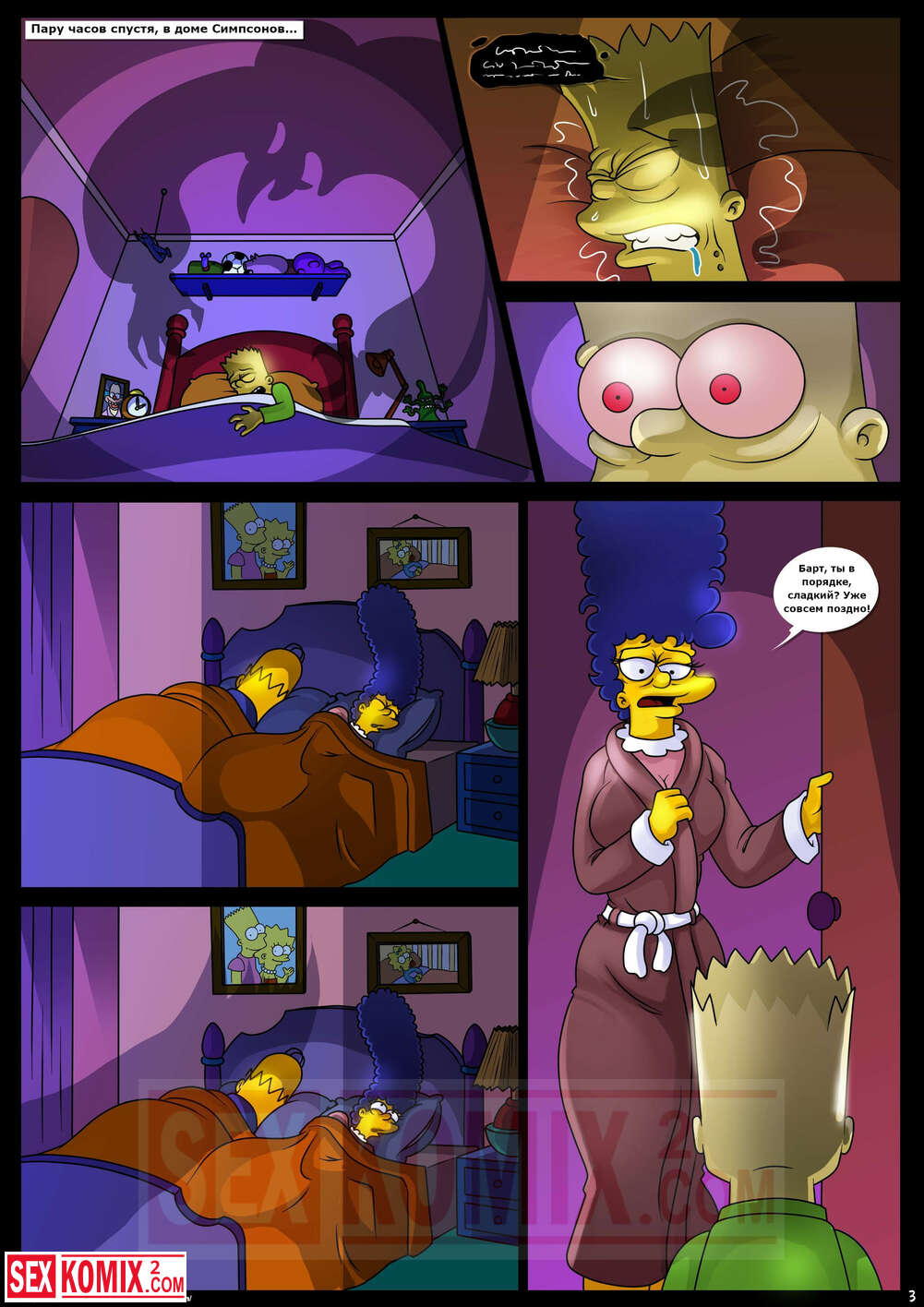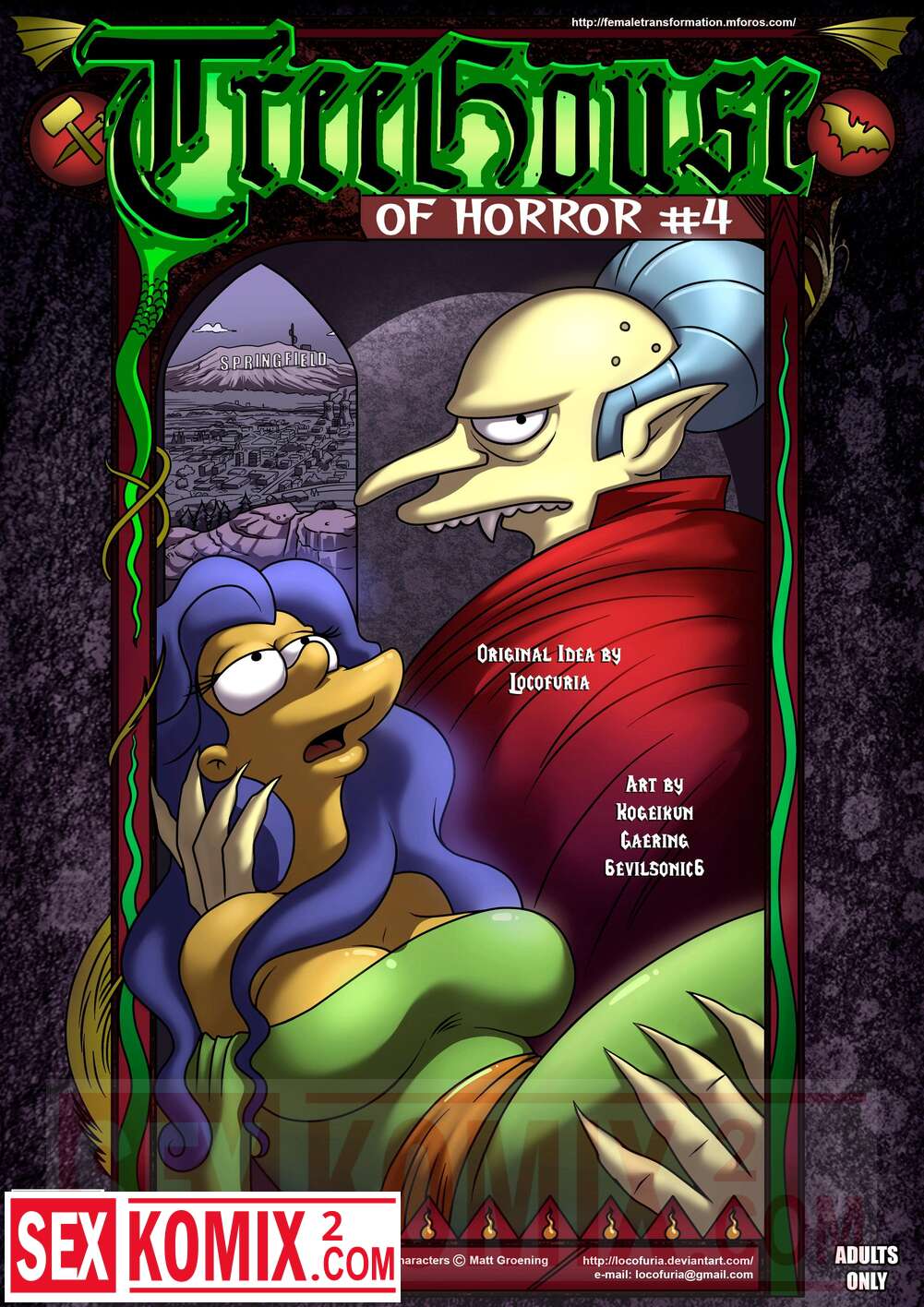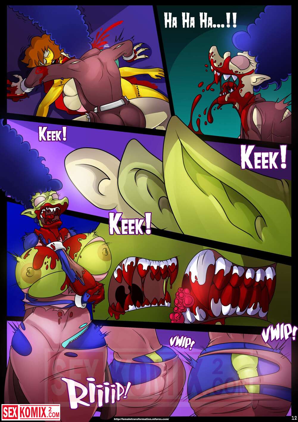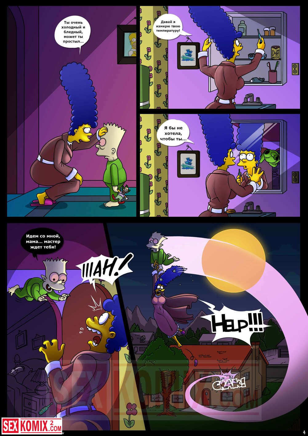 Порно комикс Симпсоны. Домик на дереве ужасов. Часть 4. Kogeikun. Семья Симпсонов попала в старый замок, где обитает древний вампир. Он кусает Мардж и трахает её, пока Гомер спит.