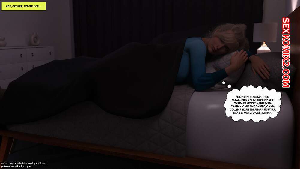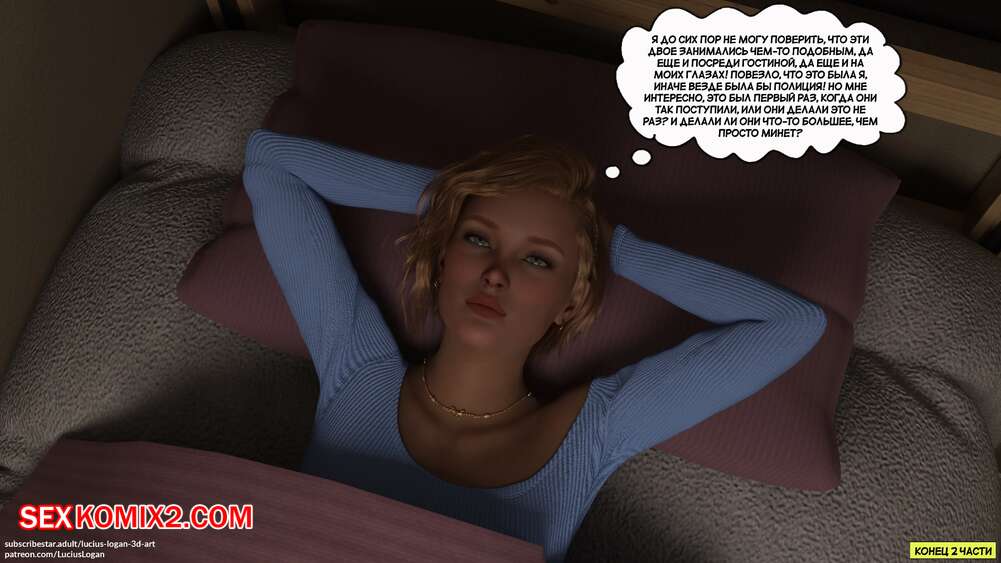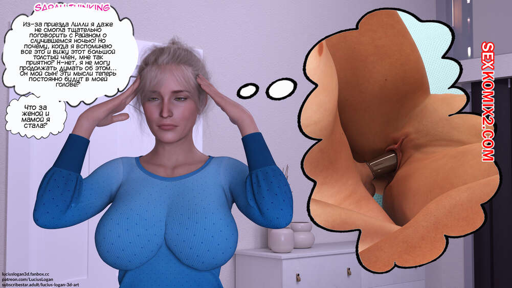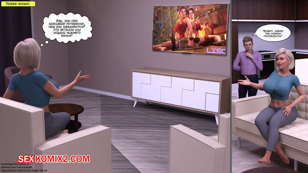Порно комикс Почему не я тоже. Часть 2. Why Not Me Too. Lucius Logan Горячая милфа Сара не может устоять перед соблазном ощутить в себе член сына. Красотка согласилась раздеться перед сыном и раздвинула ножки, чтобы он выебал ее пизденку.