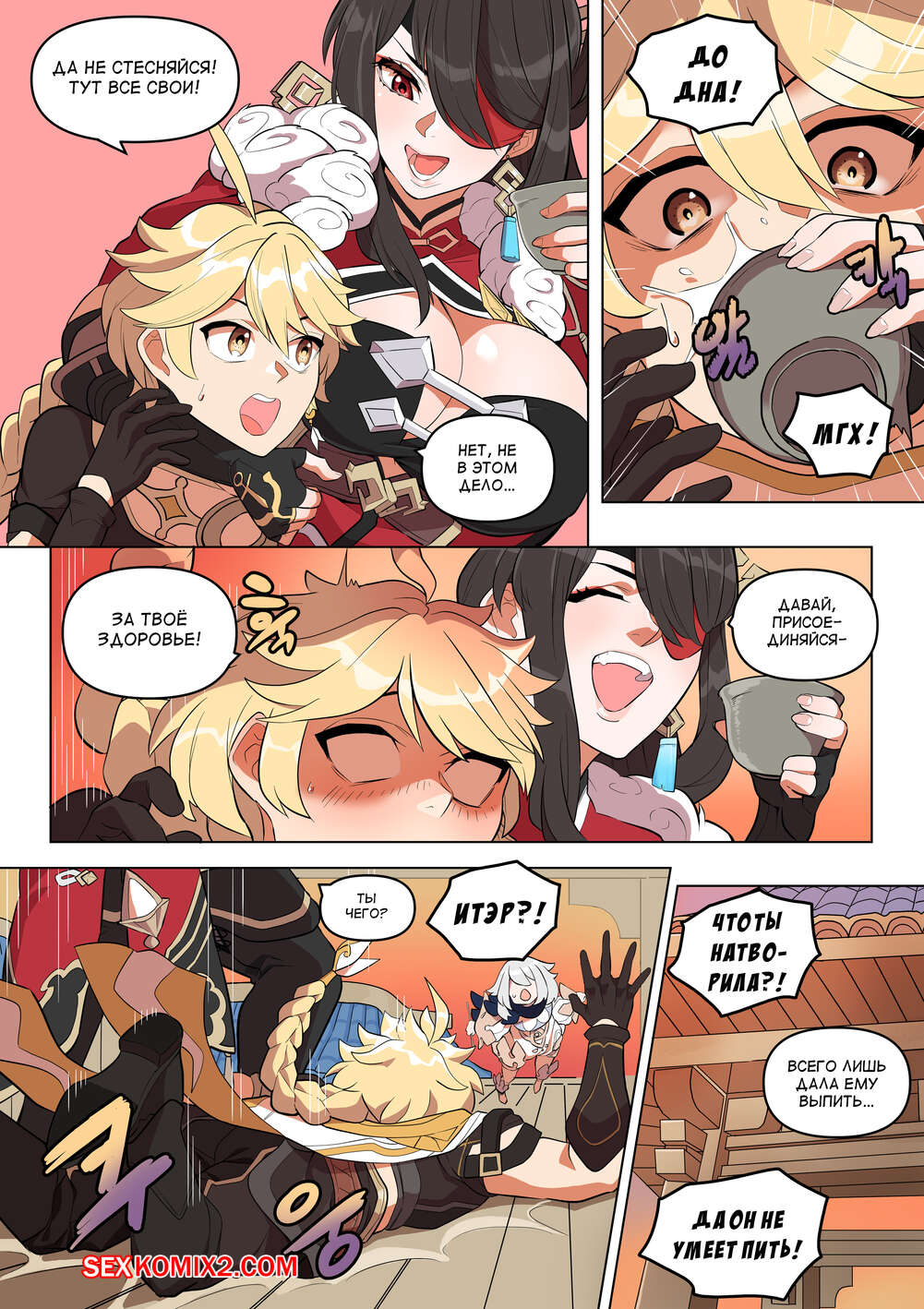 Порно комикс Genshin Impact. The Alcor. Bluecandy Горячая брюнетка напилась в баре со своим дружком и решила с ним повеселиться. Девушка отвела парня в номер и отсосала его большой хуй, после чего дала ему себя выебать.