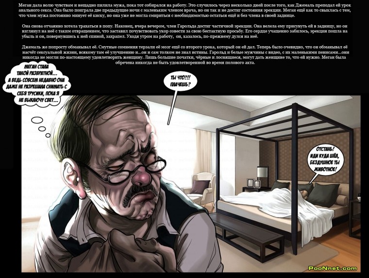 Порно комикс «Уроки от соседа. Часть 4». В этом продолжении секс комикса вы увидите, как бедная белая цыпочка уже окончательно разочаровалась в секса со своим мужем. И не смотря на то, её брак на грани разрыва. Она продолжает ходить к чернокожему соседу с большим членом, за очередной порцией спермы. И в этот раз она хочет продвинуться дальше и просит соседа трахнуть её с задницу, так как об анальном сексе она мечтает уже давно, просто боялась попробовать. Естественно парень ей не отказал и прописал толстый член поглубже в задницу!