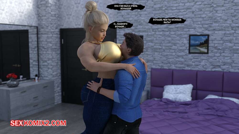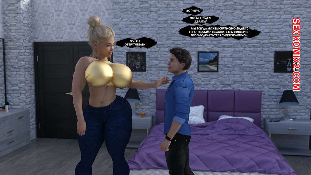 Порно комикс Город Богинь. Часть 2. City of Goddesses. EndlessRain0110 Горячая блондинка вернулась домой к своему парню и решила с ним повеселиться. Девушка увеличилась в размерах и возбудила парня, после чего дала ему себя выебать.