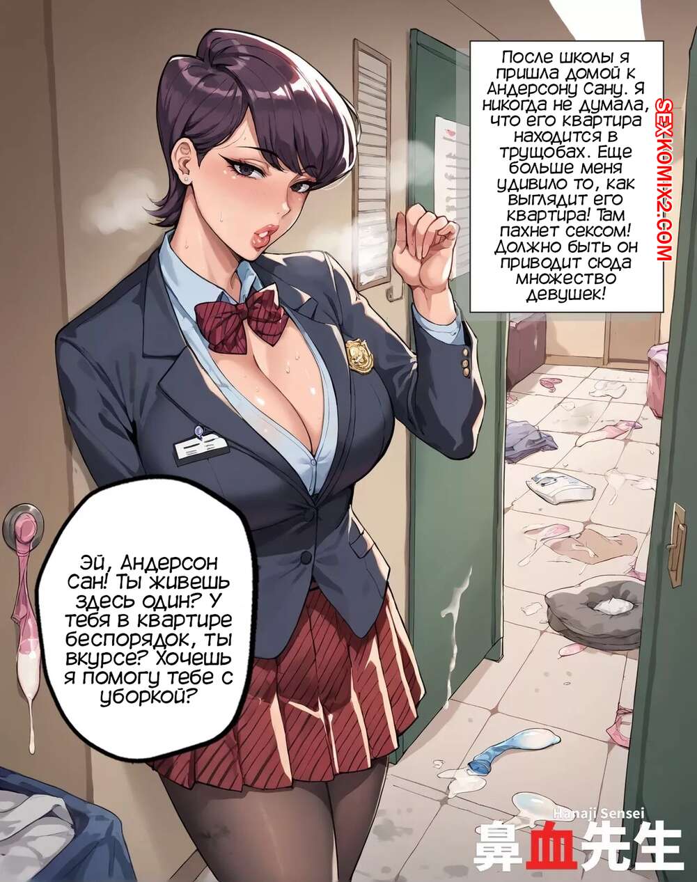 Порно комикс Коми Сан. Мама Коми Сан умеет общаться. Mama Komi San Can Communicate. Hanaji Коми Сан приболела и ее мамочка решила заменить девушку в школе на один день. Там она познакомилась со студентом по обмену, который соблазнил милфу своим огромным черным хуем и хорошенько выебал мамку новой одноклассницы, не осозновая кого он на самом деле трахает.
