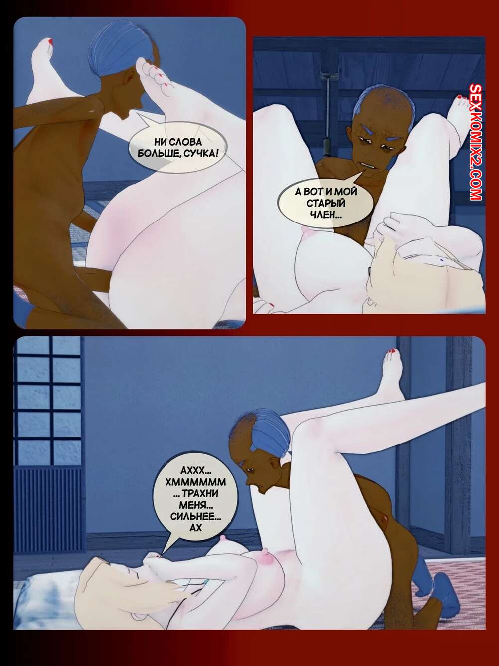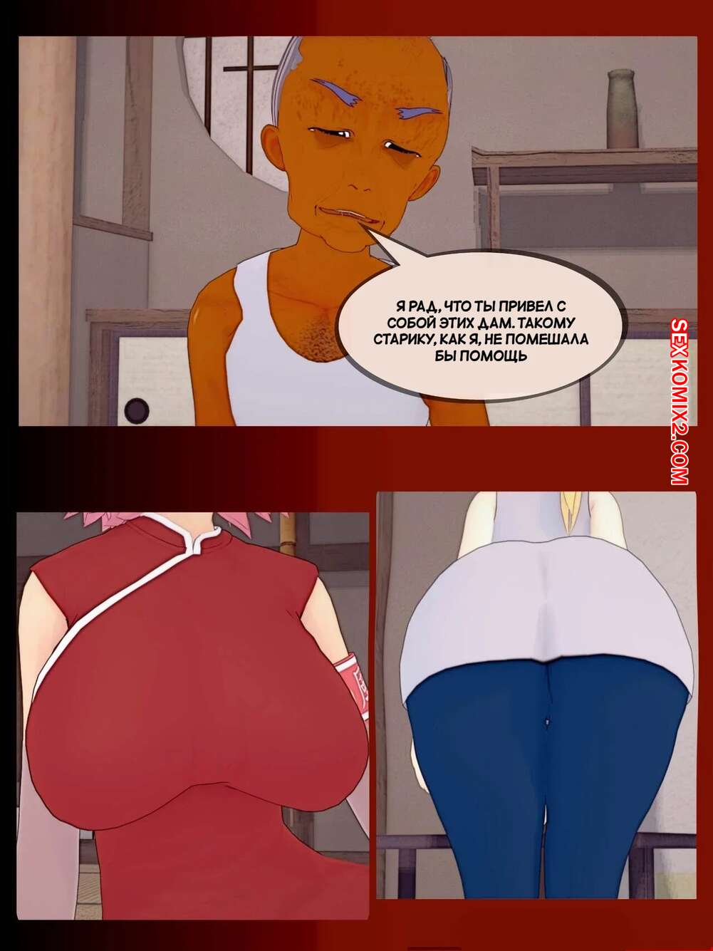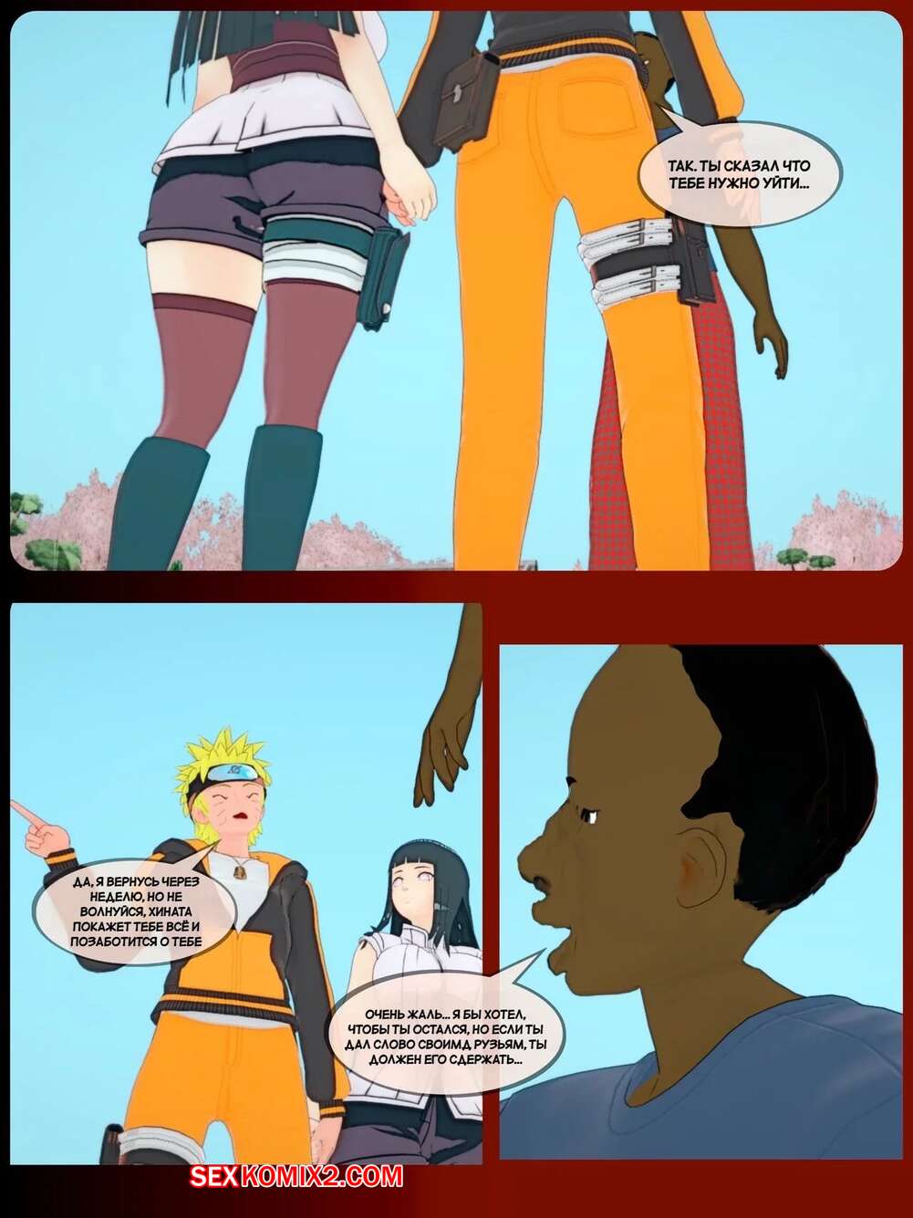 Порно комикс Наруто. Нерассказанные истории. Untold tales. Koikatsu. Темнокожий старик соблазняет горячих красоток своим большим членом. Они раздеваются и сосут хуй старика, после чего он как следует их трахает, доставляя девушкам огромное удовольствие.