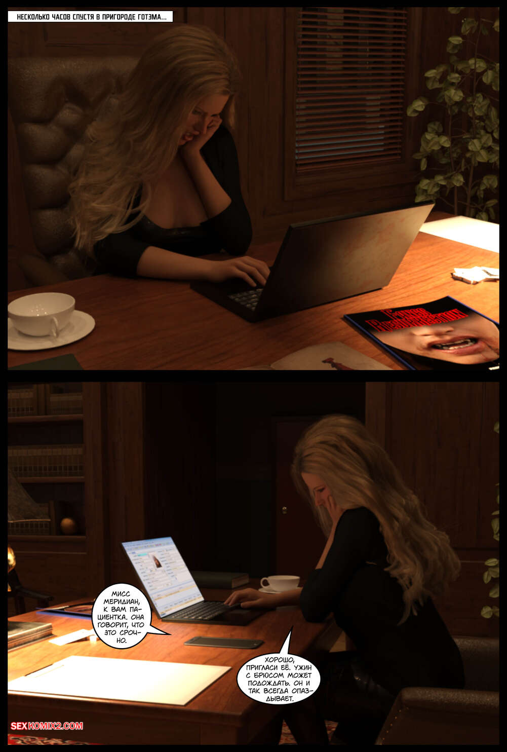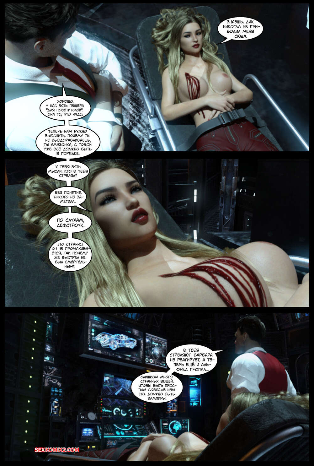 Порно комикс DC. Вампиры DC. DC Vampires. Gotham Underworld. Cantraps Робин привел в особняк сексуальную блондинку и отправился с ней в спальню. Красотка разделась и раздвинула ножки перед парнем, после чего дала ему себя как следует выебать.