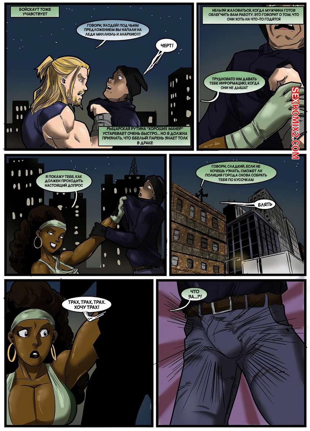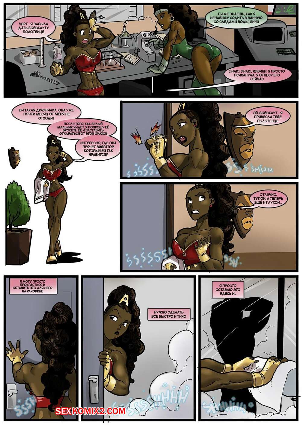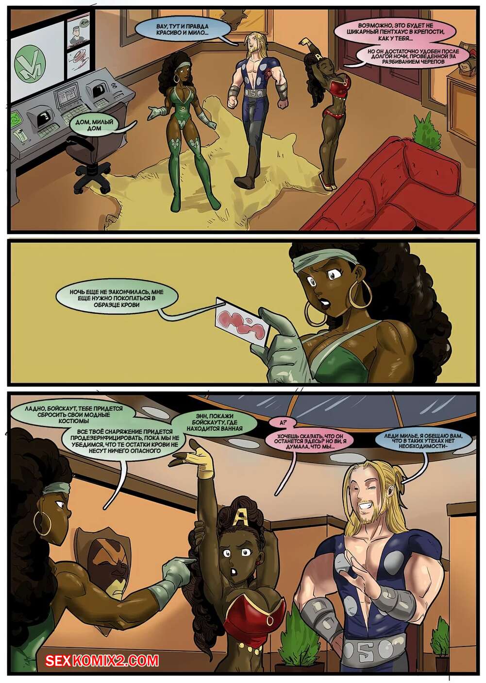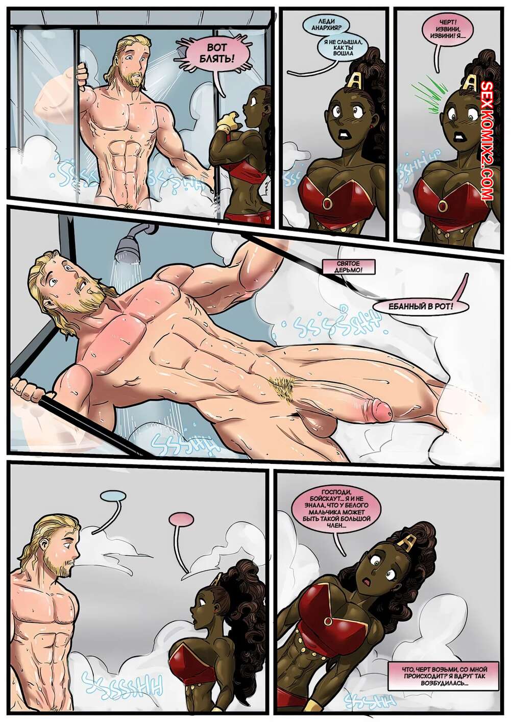 Порно комикс Истории героев. Коричневый сахар. Hero Tales. Brown Sugar High. Rabies TLagomorph. Горячие темнокожие красотки застала парня в душе и возбудились, увидев его огромный член. Девушки встали на колени и стали сосать хуй парня, после чего дали ему себя выебать.