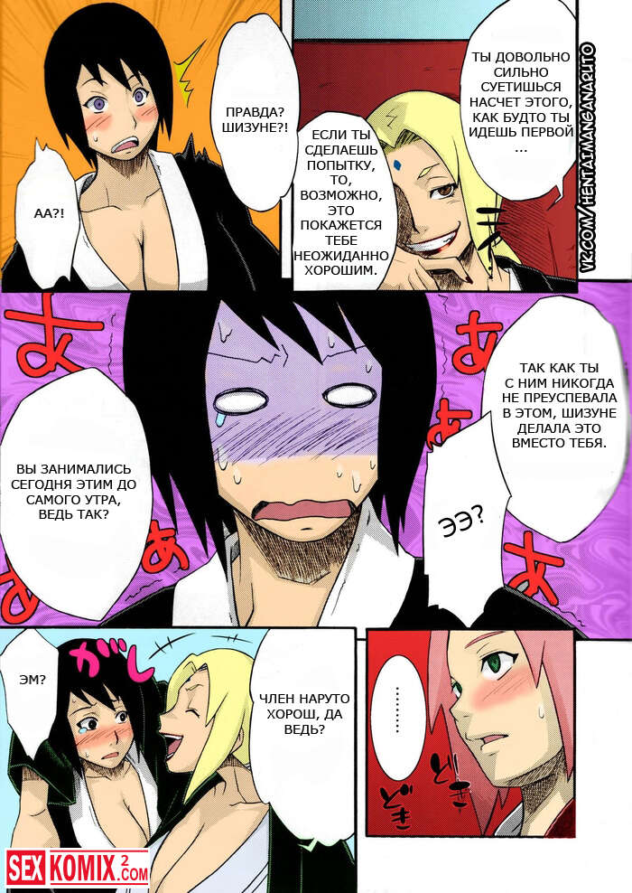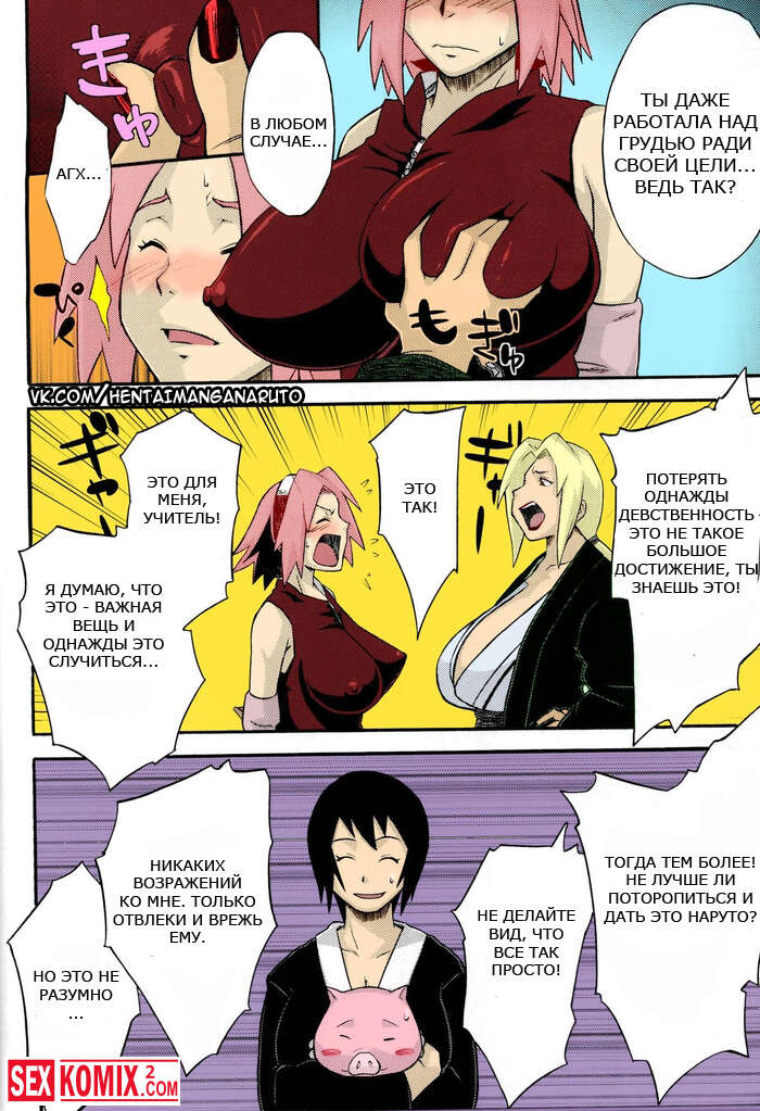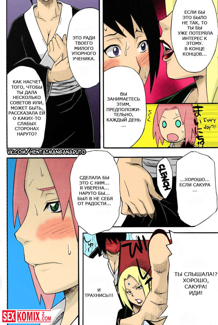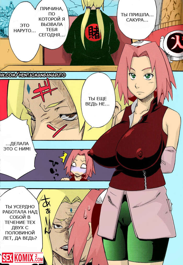 Порно комикс Наруто Бакучи Бутай. Bakuchi Butai. Цунаде устроили тренировку для Наруто и Сакуры, она сказала, что им нужно целоваться трахаться, а сама сидела и мастурбировала на происходящее.
