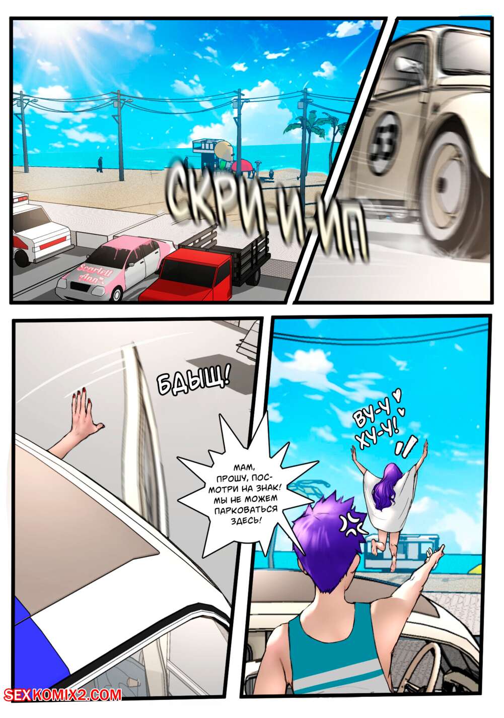 Порно комикс Дорогая мама Клара. Часть 4. Dear Mother Clara. Scarlett Ann Горячая милфа Клара отправилась на пляж со своим сыном. Там они пошли в уединенное место, где мамочка разделась перед сыном и стала сосать его большой хуй. Красотка раздвинула ножки и дала парню себя выебать, от чего они вместе получили удовольствие.
