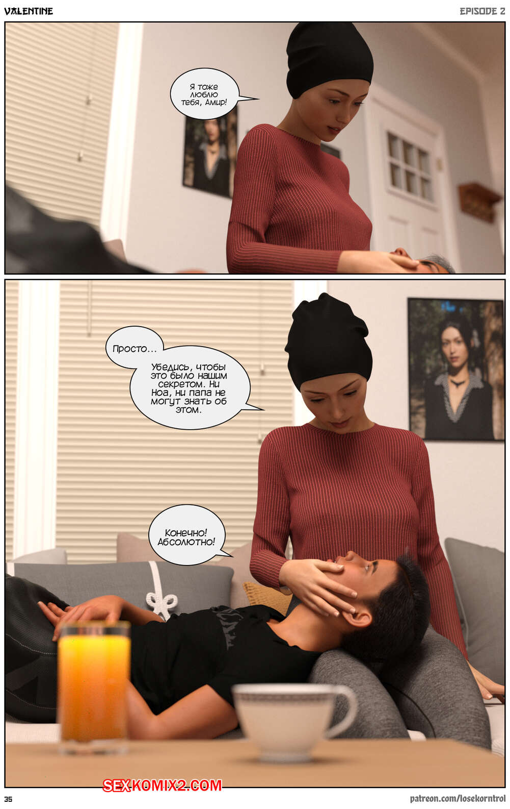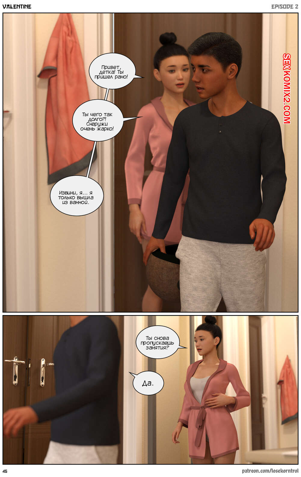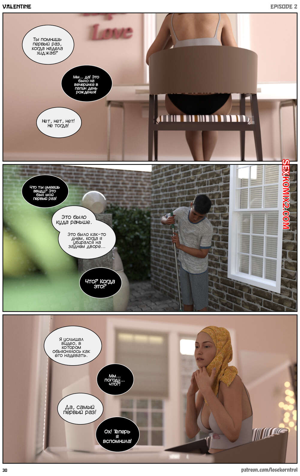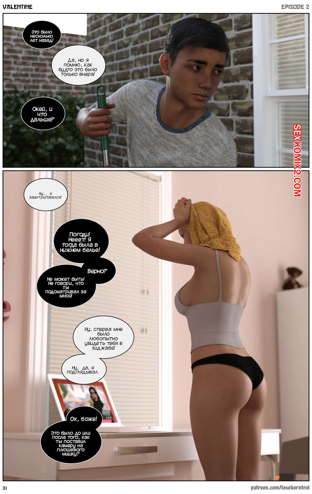 Порно комикс Валентина. Часть 2. Valentine. Losekorntrol Амир вошел в ванну и застал там свою сестру Дину. Парень смутился и поспешил уйти, но девушка попросила брата остаться и позволила ему подрочить, глядя на ее голое тело.