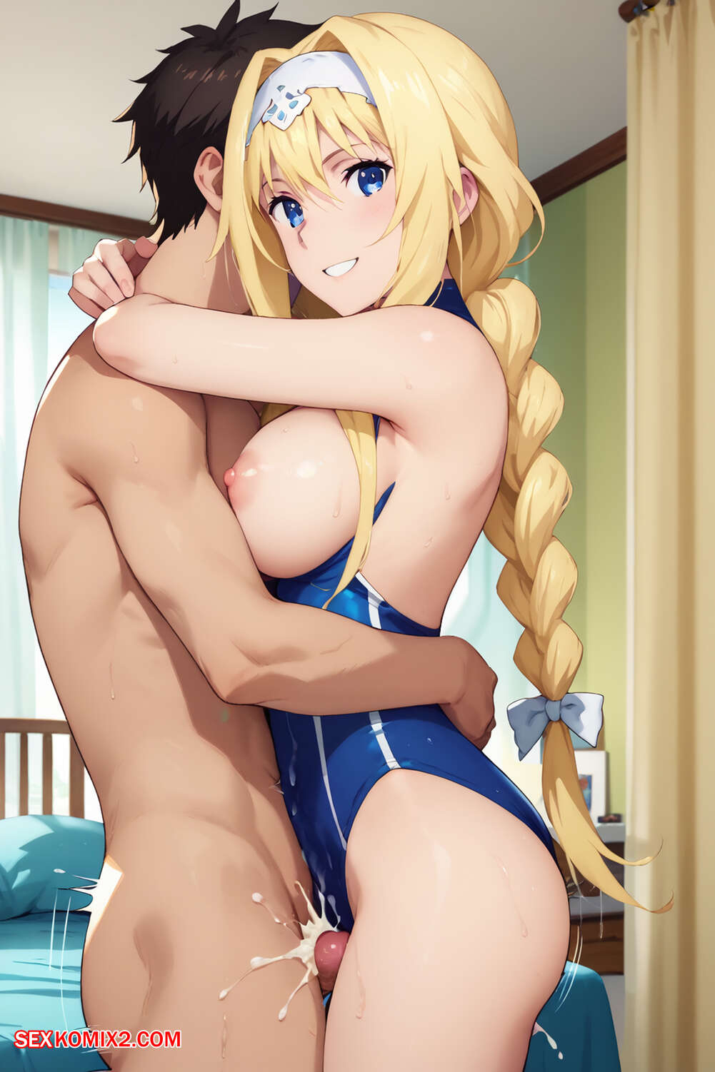 Порно комикс Alice Zuberg. ArimaAgamiAI Горячая блондинка была очень возбуждена и решила повеселиться со своим дружком. Девушка разделась и возбудила парня шикарным телом, после чего дала ему себя выебать.