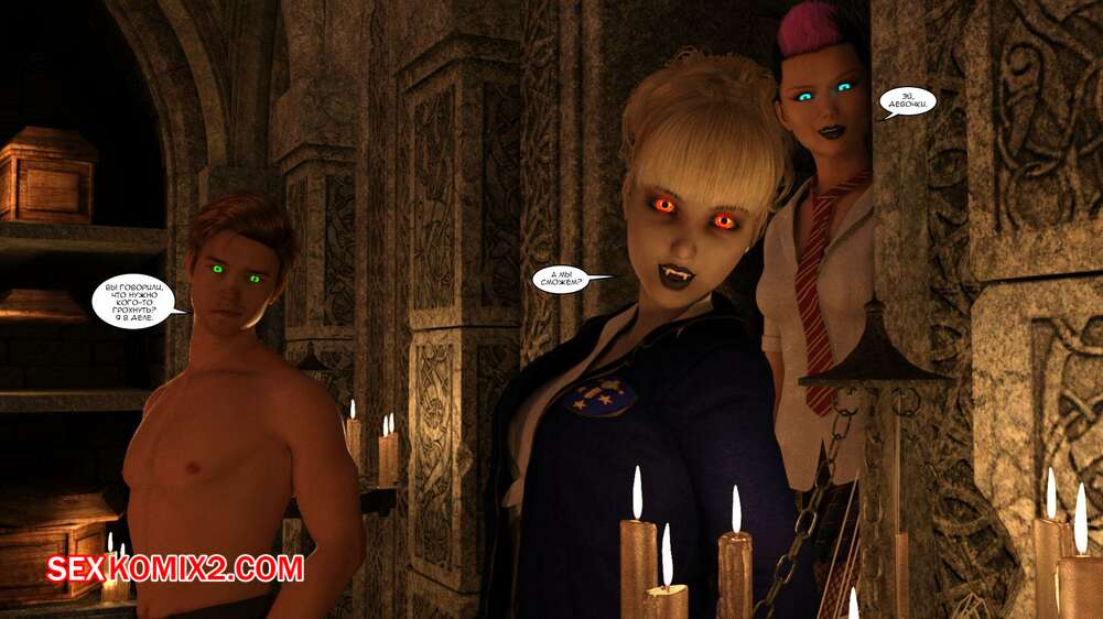 Порно комикс Кровососки 102. Bloodsucking 102. Cantraps Горячая блондинка вампирша была очень возбуждена и хотела трахаться. Она отправилась в комнату к парню и оседлала его большой хуй, чтобы он ее хорошенько выебал.