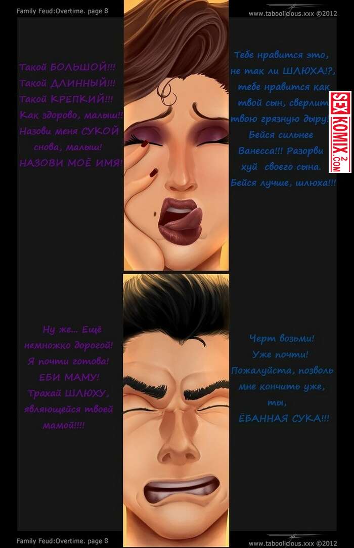 Порно комикс Семейная рознь. Овертайм. После тяжелой игры парень отдыхал в раздевалке. Женщина пришла к нему с призом, она оголила свои сочные сиськи и обняла ими лицо парня.