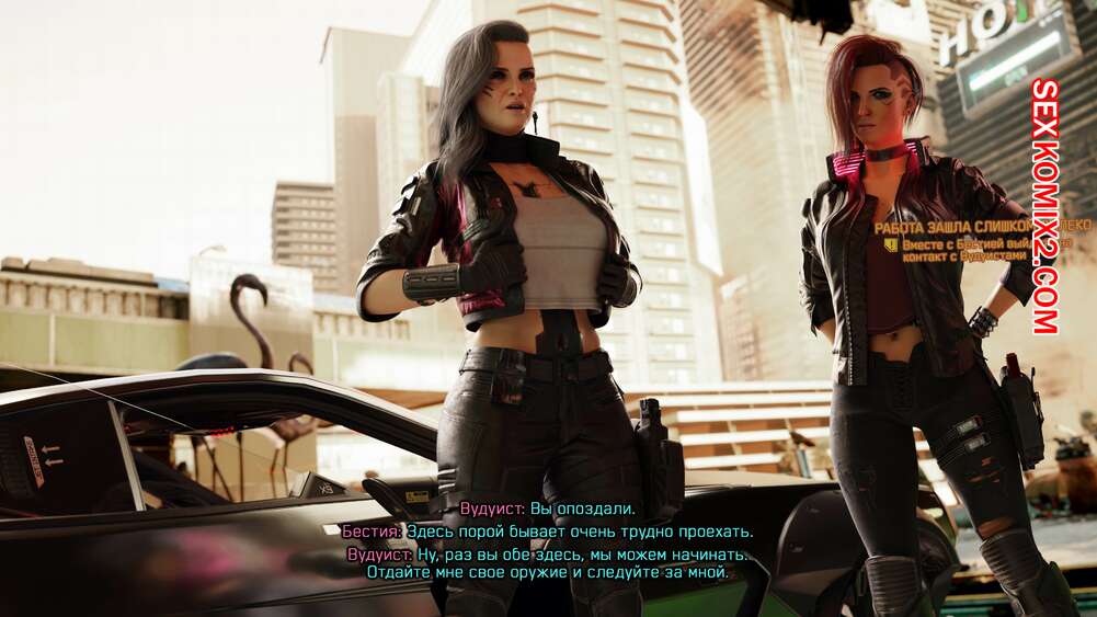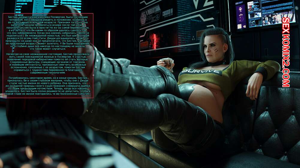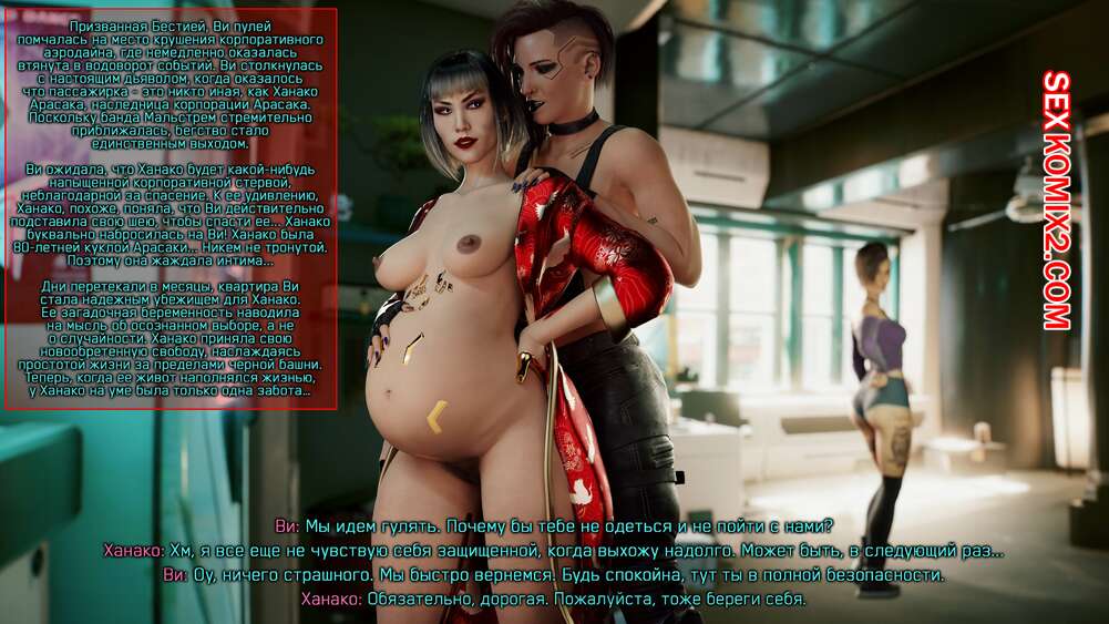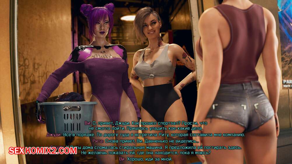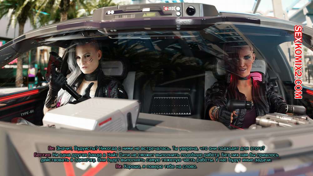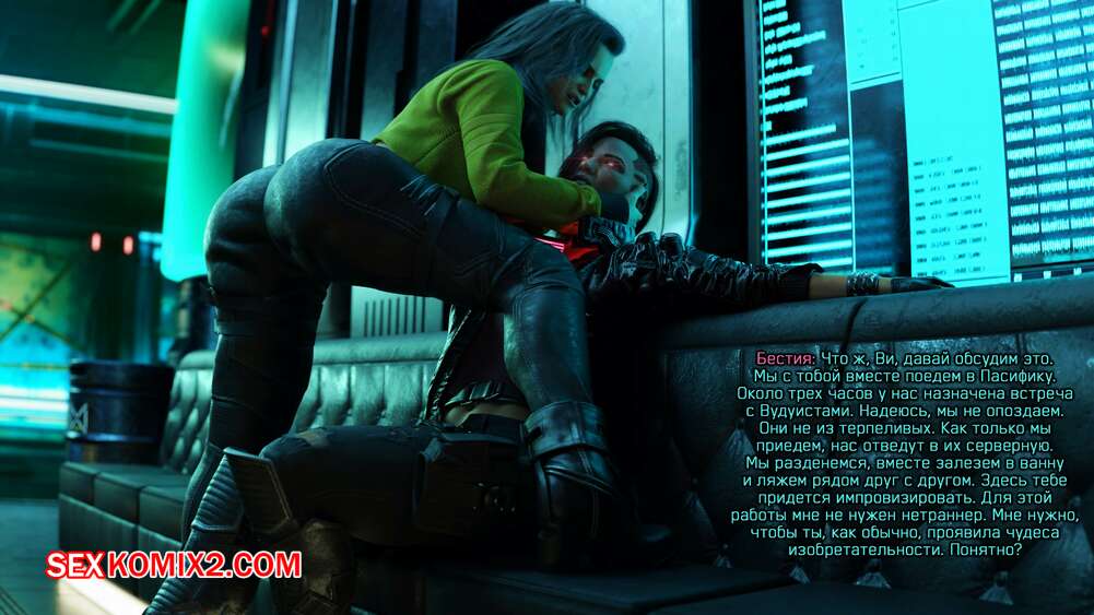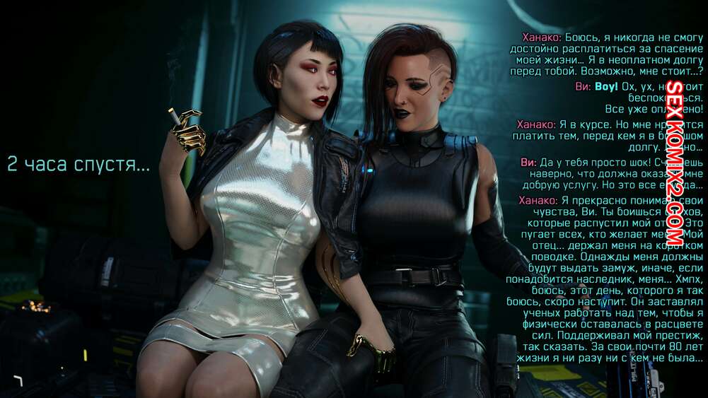 Порно комикс Cyberpunk 2077. Сборник миниисторий. Часть 2. Dinoboy Горячие сексуальные красотки очень возбуждены и хотят трахаться. Они раздеваются и сосут большие хуи друг дружки, после чего занимаются страстной еблей, получая огромное удовольствие.