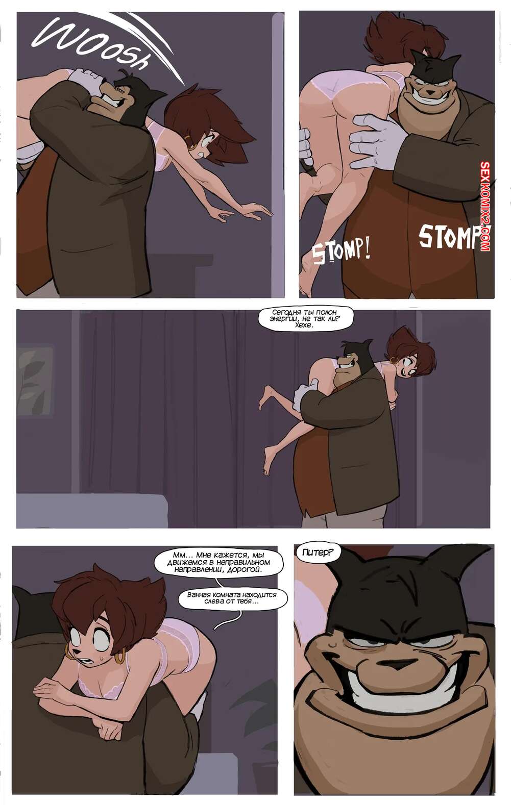Порно комикс Goof Troop. Пэг и Макс. Peg x Max. Amugea. Горячая милфа застала молодого соседского парня за тем, как он нюхает ее трусики. Красотку это очень возбудило, поэтому она решила закрыть дверь в комнату, чтобы трахнуться с парнем.