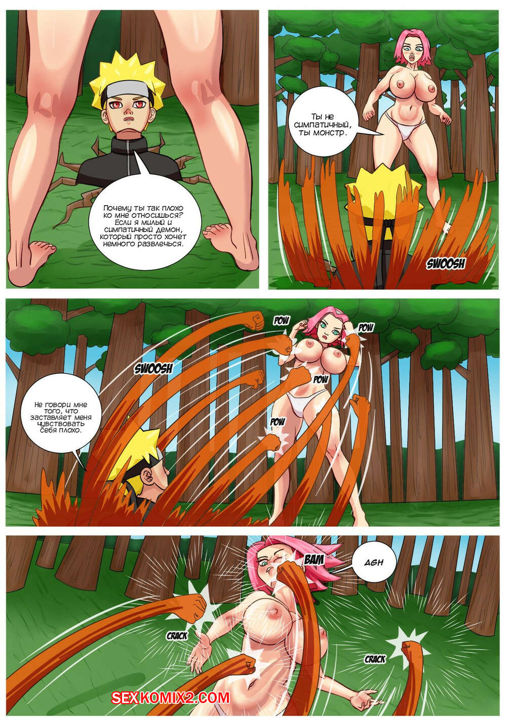 Порно комикс Наруто. Сакура и Наруто. Sakura and Naruto. Crazyeye790 Демон Лис овладел телом Наруто и решил воспользоваться шикарной красоткой Сакурой. Он раздел девушку и дал ей отсосать свой большой хуй, после чего выебал красотку во все дырочки.