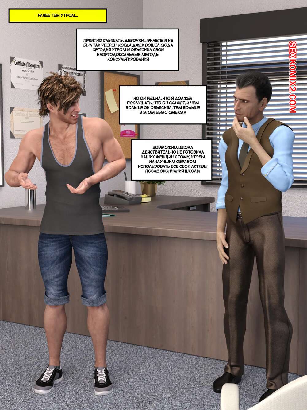 Порно комикс Вдумчивое руководство. Thoughtful Guidance. ZeeAll. Горячие красотки пришли в кабинет к парню, который жаждал с ними повеселиться. Девушки разделись и отсосали большой хуй парня, после чего дали ему себя выебать.