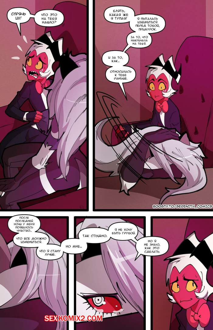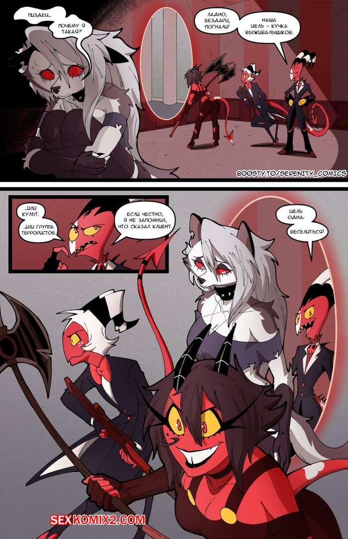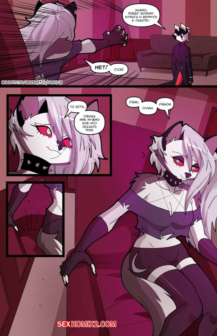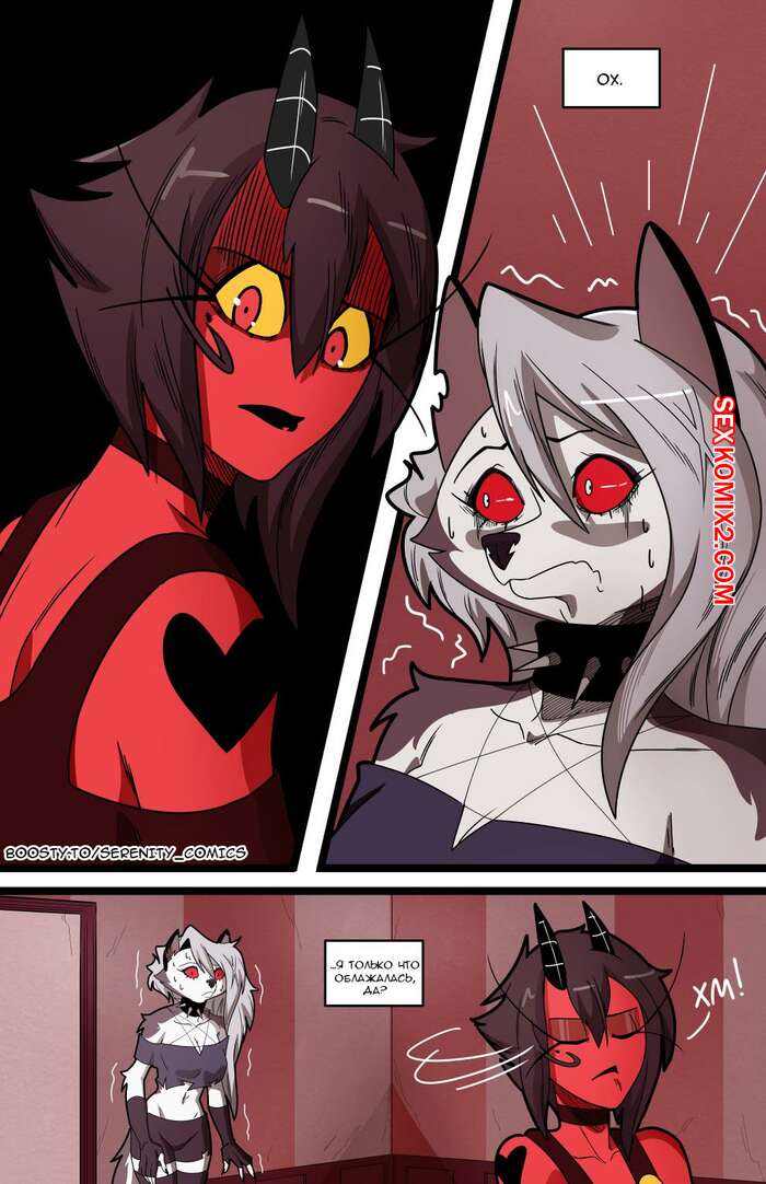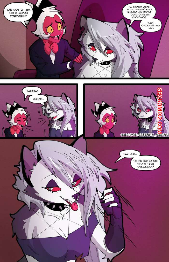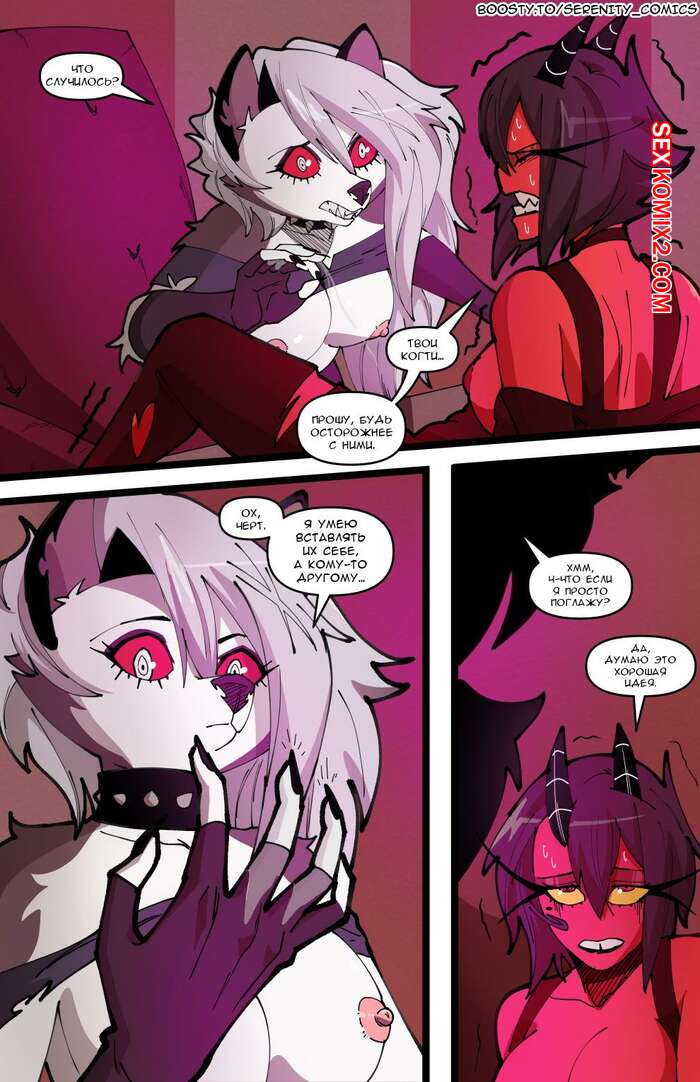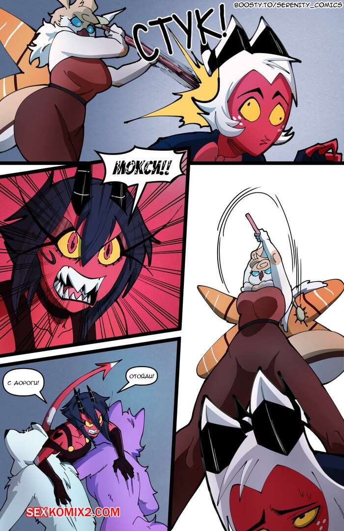 Порно комикс Адский босс. Адское трио. Часть 2. Helluva Trio. Swain Горячая блондинка Луна провела невероятную ночь секса с Мокси и Милли. Утром они позавтракали все вместе, но девушка все еще не может забыть свои великолепные оргазмы.