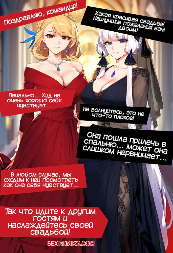 Порно комикс Azur Lane. Свадебное приключение Худ. Hoods Wedding Adventure. RanTyp Во время своей свадьбы горячая блондинка уединилась в комнате с темнокожим парнем. Он соблазнил девушку своим большим хуем и дал ей его отсосать, после чего выебал пизденку девушки.