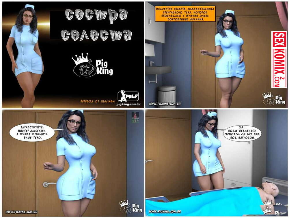 Порно комикс Сестра Селеста. Заботливая медсестра с большими сиськами, с вниманием относится ко всем пациентам. Особенно если у пациентов огромные хуи. Работает она точно не в муниципальной поликлинике.