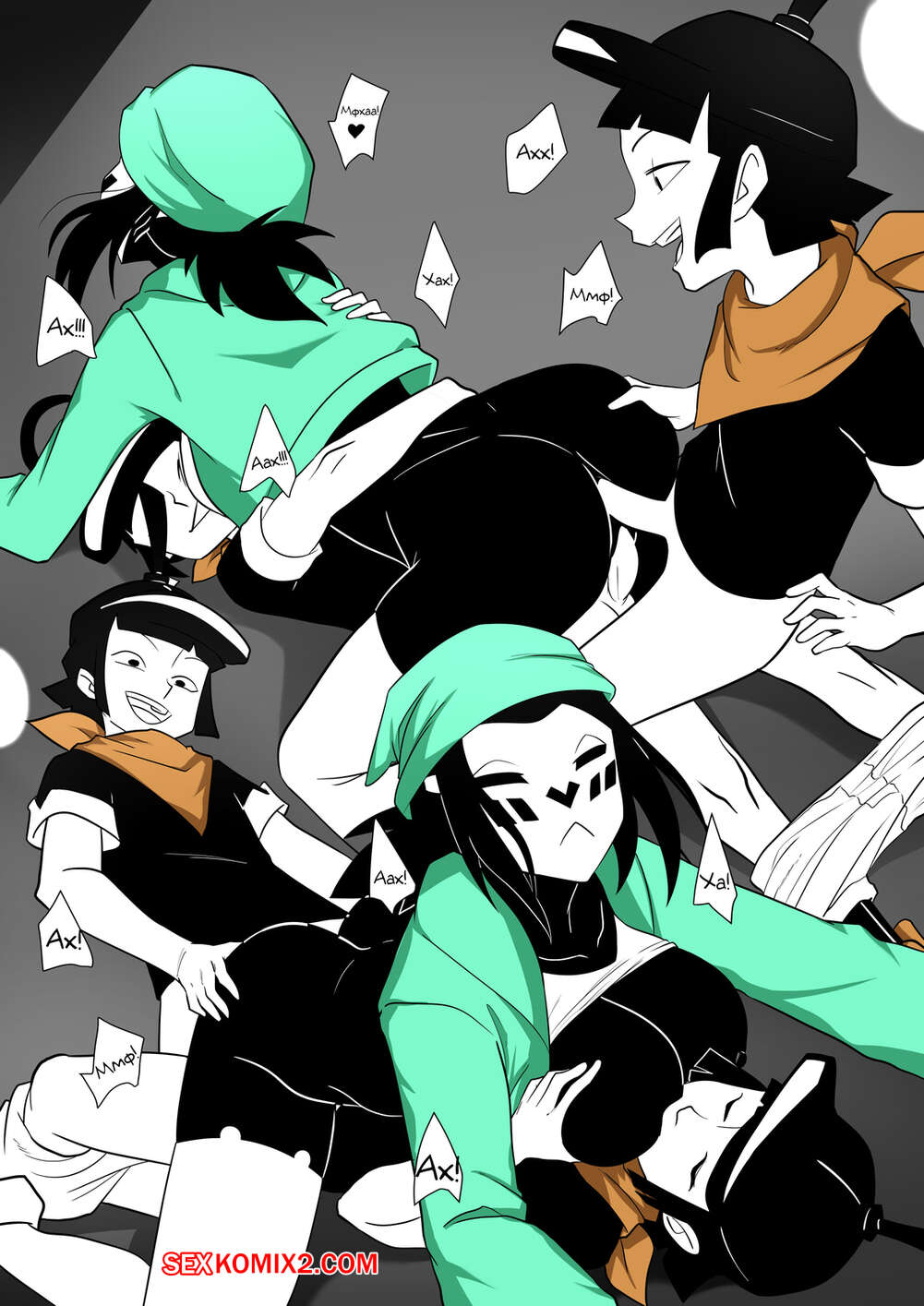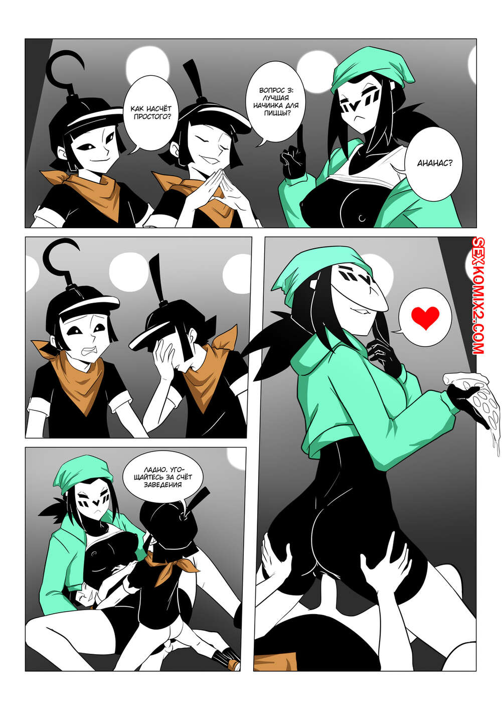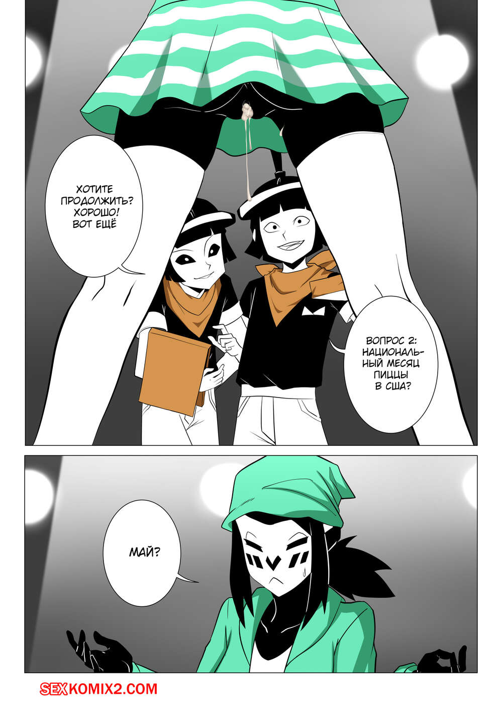 Порно комикс Mime and Dash. Правило 63. Vyzov Два парня остановили сексуальную красотку и предложили ей поучавствовать в игре. Девушке задают вопросы, а если она отвечает неправильно, то они ебут ее во все дырочки.
