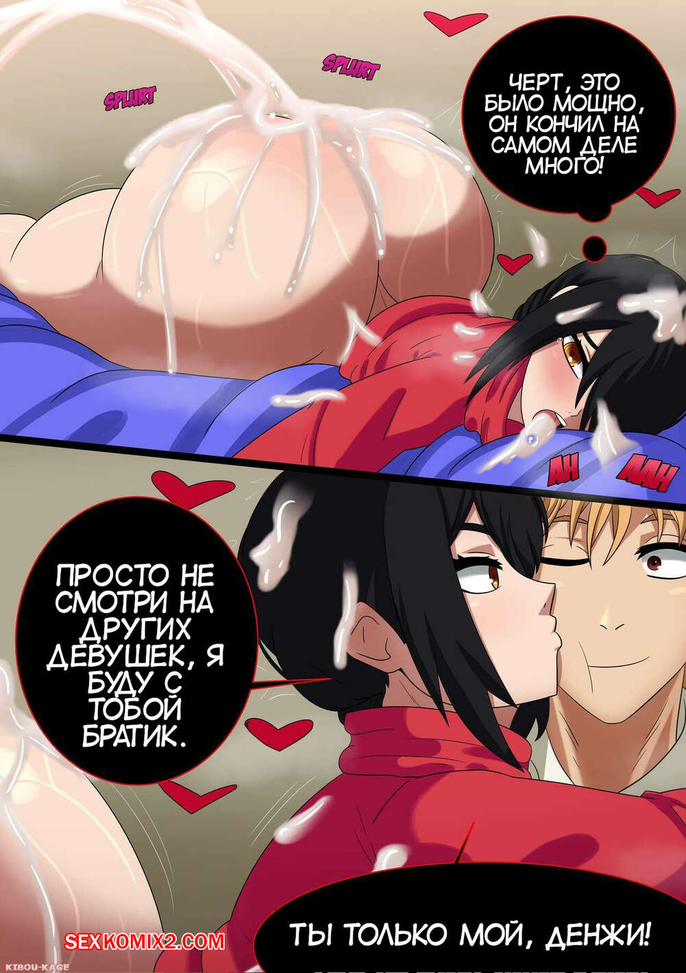 Порно комикс Chainsaw Man. Наюта. Nayuta. Kibou Kage Горячая брюнетка Наюта была очень возбуждена и решила повеселиться со своим братиком. Девушка разделась и отсосала хуй парня, после чего дала ему выебать свою задницу.