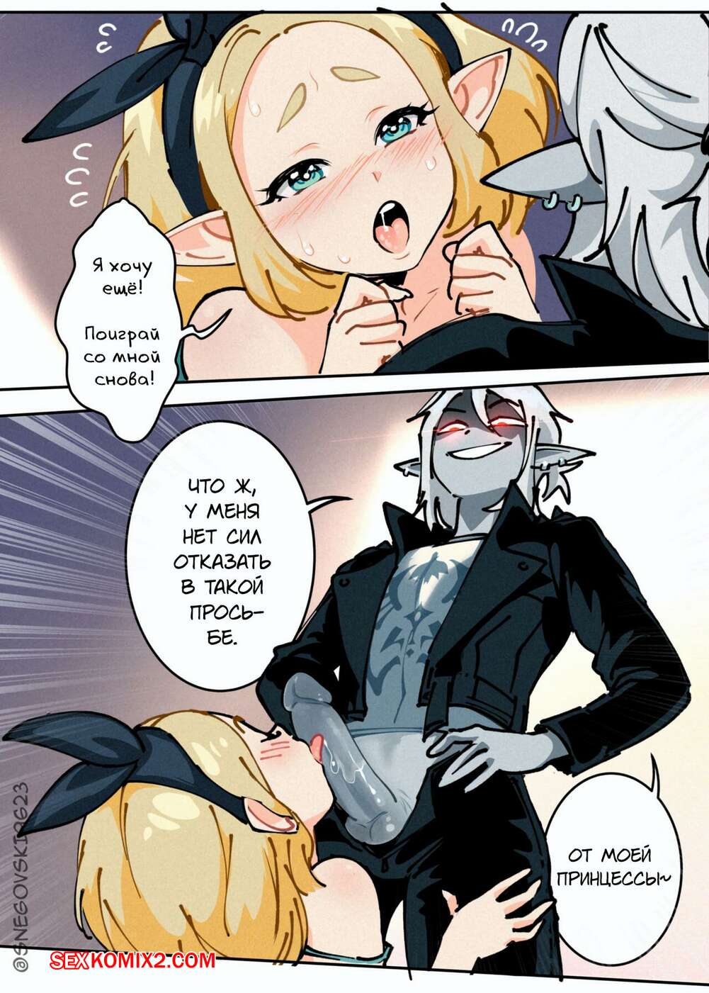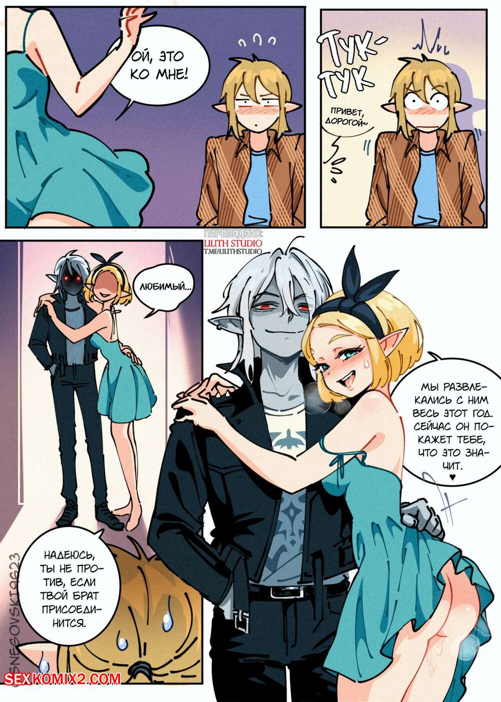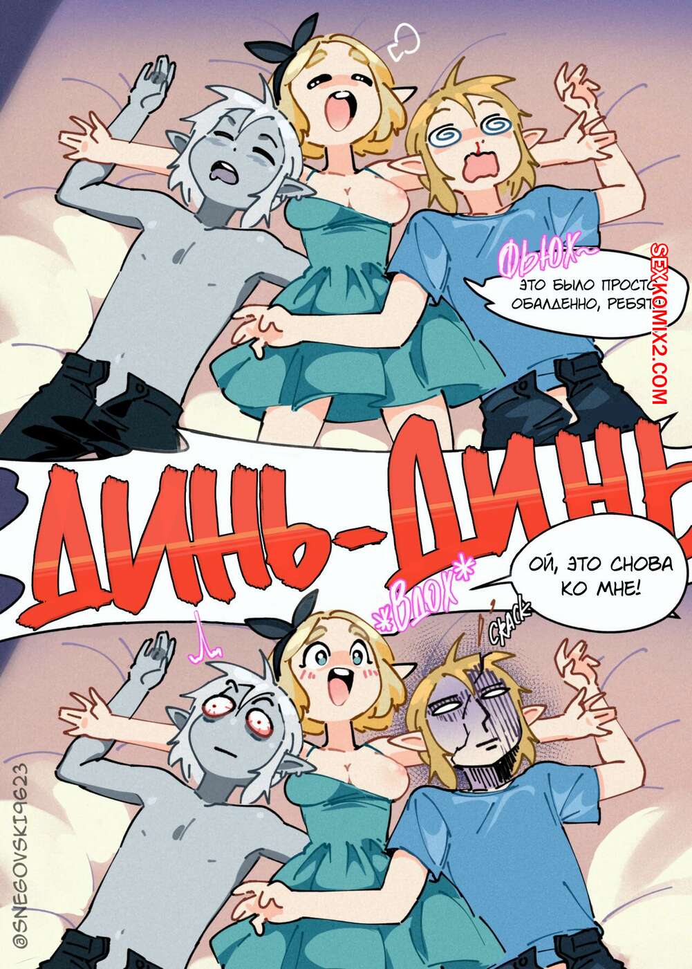 Порно комикс The Legend Of Zelda. Треугольный камень. snegovski Горячая блондинка была очень возбуждена и решила повеселиться с двумя своими дружками. Девушка разделась и отсосала большие хуи парней, после чего дала им себя выебать.