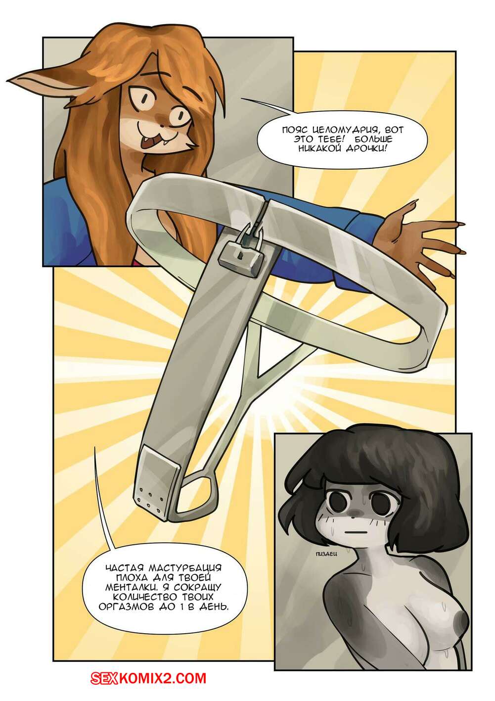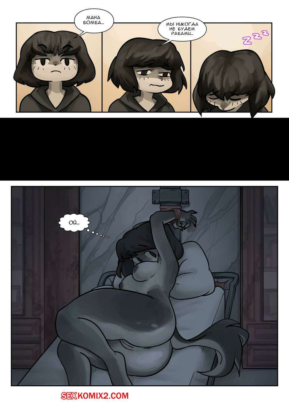 Порно комикс Перевоспитание Пацанки. Часть 1 и 2 Девушка брюнетка ведет себя как пацанка, поэтому другая девушка решила перевоспитать ее. Она раздела и связала девушку, желая вызвать в ней сексуальное возбуждение.