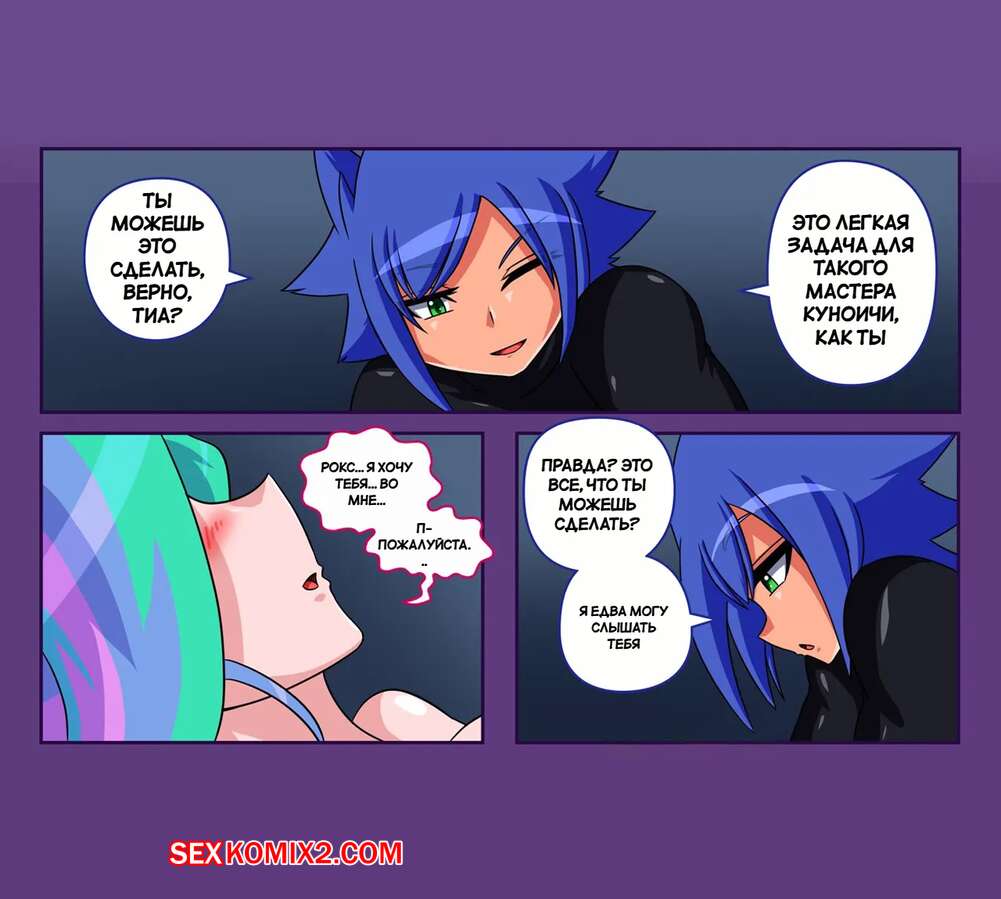 Порно комикс Май Литл Пони. Рокс и Целестия. Rox vs Celestia. Fenrox Горячая красотка пригласила парня к себе домой, желая повеселиться. Девушка разделась и возбудила парня шикарным телом, после чего отсосала его большой хуй и дала ему себя выебать.