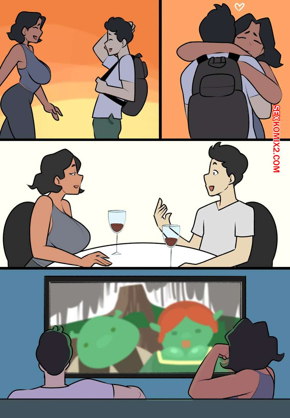 Порно комикс Divorced Aunt. Jopuari Молодой парень приехал в гости к своей горячей тете, которая недавно развелась с мужем. Красотка была очень возбуждена и отсосала хуй племянника, после чего дала ему себя выебать.