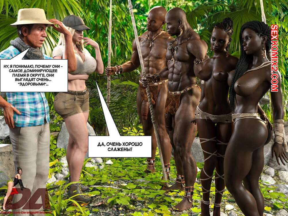 Порно комикс Посвящение антрополога. Часть 1. Anthropologists Dedication. DerangedAristocrat Мужик со своей сексуальной женой приехали на остров, где они встретили племя местных жителей. Они пригласили гостей провести время с ними, а в итоге все это переросло в групповую еблю.